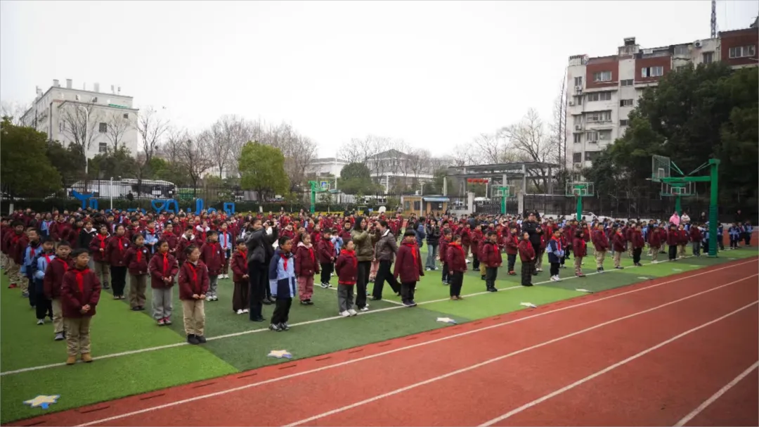 开学日系列活动的重头戏——“悦雅润童心 策马向光行”开学典礼,在庄严的升旗仪式中正式拉开帷幕。来自六3中队的升旗手们精神抖擞、步伐铿锵,全体师生肃立致敬,雄壮的国歌声响彻校园上空,五星红旗冉冉升起,每一双眼睛都饱含着对祖国的热爱,每一声歌声都寄托着对新学期的期盼。