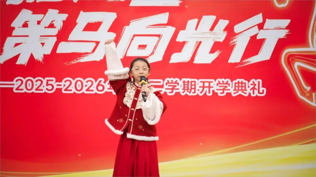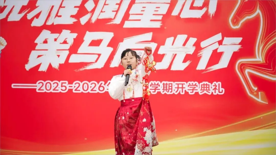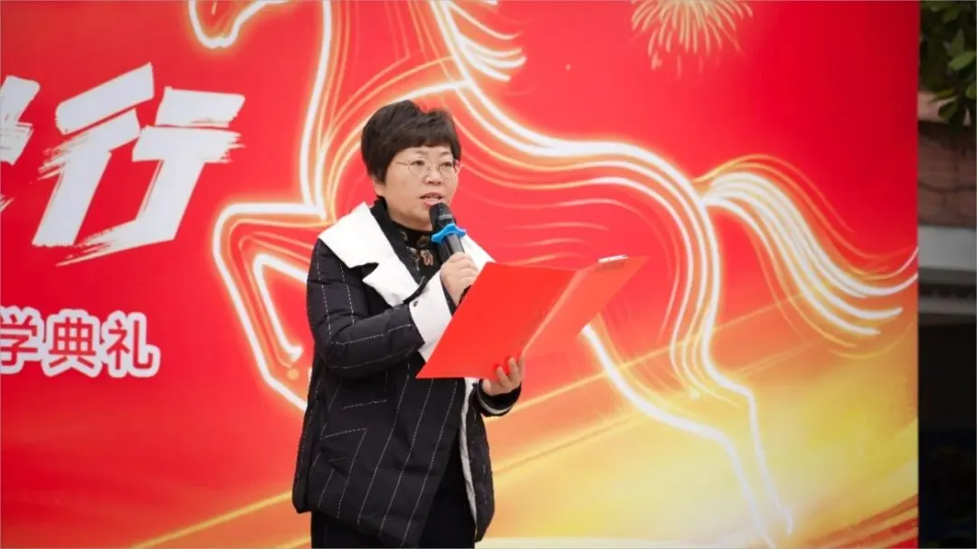 紧接着,贾青校长发表新学期致辞,将典礼气氛推向高潮。她回顾过往、展望未来,向全体师生提出殷切期望,鼓励大家以龙马精神砥砺品格、以少年之志追逐梦想,在新学期里脚踏实地、勤学善思,携手并肩书写月牙湖小学更加精彩的篇章。