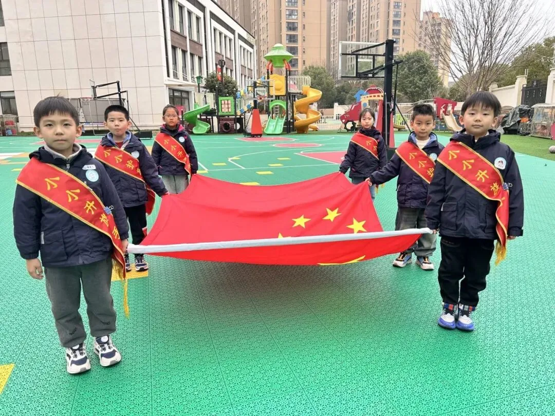 在庄严的升旗仪式中,大班的小小升旗手们精神抖擞,五星红旗冉冉升起,孩子们的眼神中充满了对祖国的热爱与对成长的向往。随后,园长妈妈为大家送上新学期的祝福,鼓励孩子们在新的学期里勇敢探索、快乐成长。