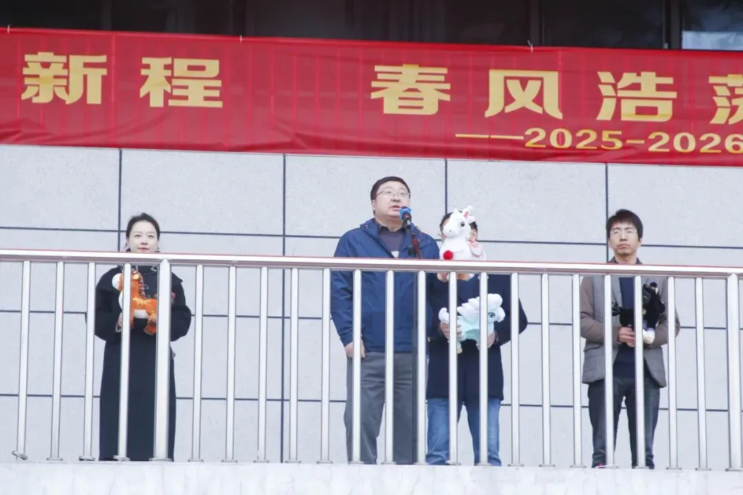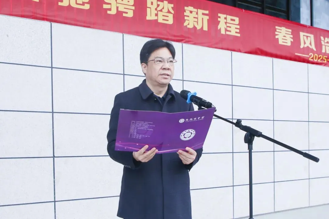 春和景明铺锦绣,马跃新程启华章。校党委书记赵光辉为开学典礼作主题致辞,结合丙午马年的文化寓意与惊蛰万物复苏的美好时节,围绕 “骐骥驰骋踏新程 春风浩荡展宏图” 的典礼主题,为全体学子送上龙马精神、策马扬鞭、一马当先三个带 “马” 的成长关键词,从身心成长、科创本领、责任担当三个维度,寄予殷切期许,为全体师生新学期的前行指明方向,温暖而铿锵的话语浸润心田,催人奋进。
