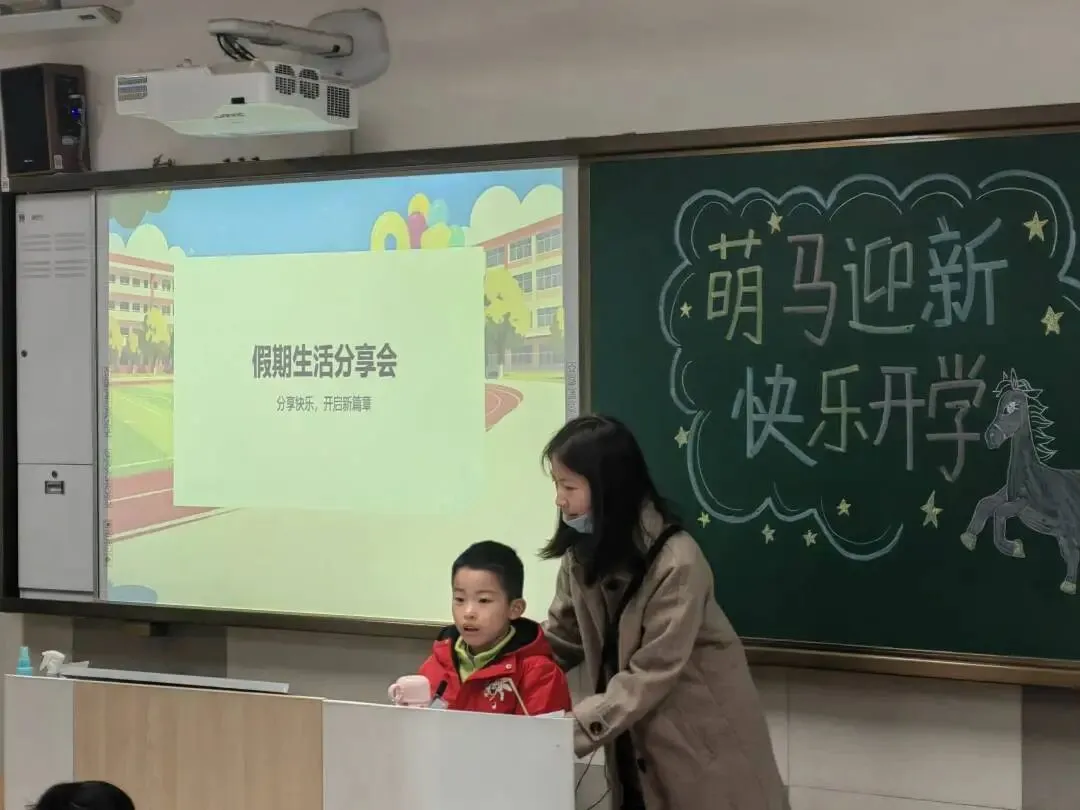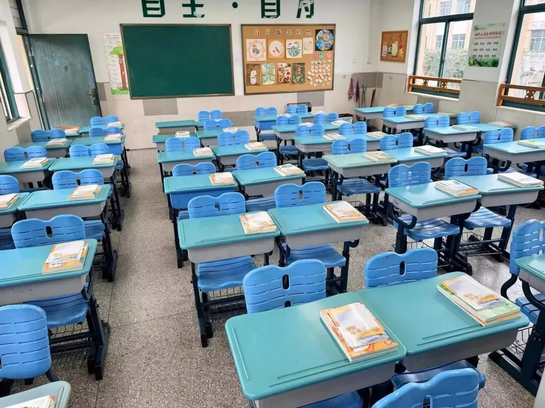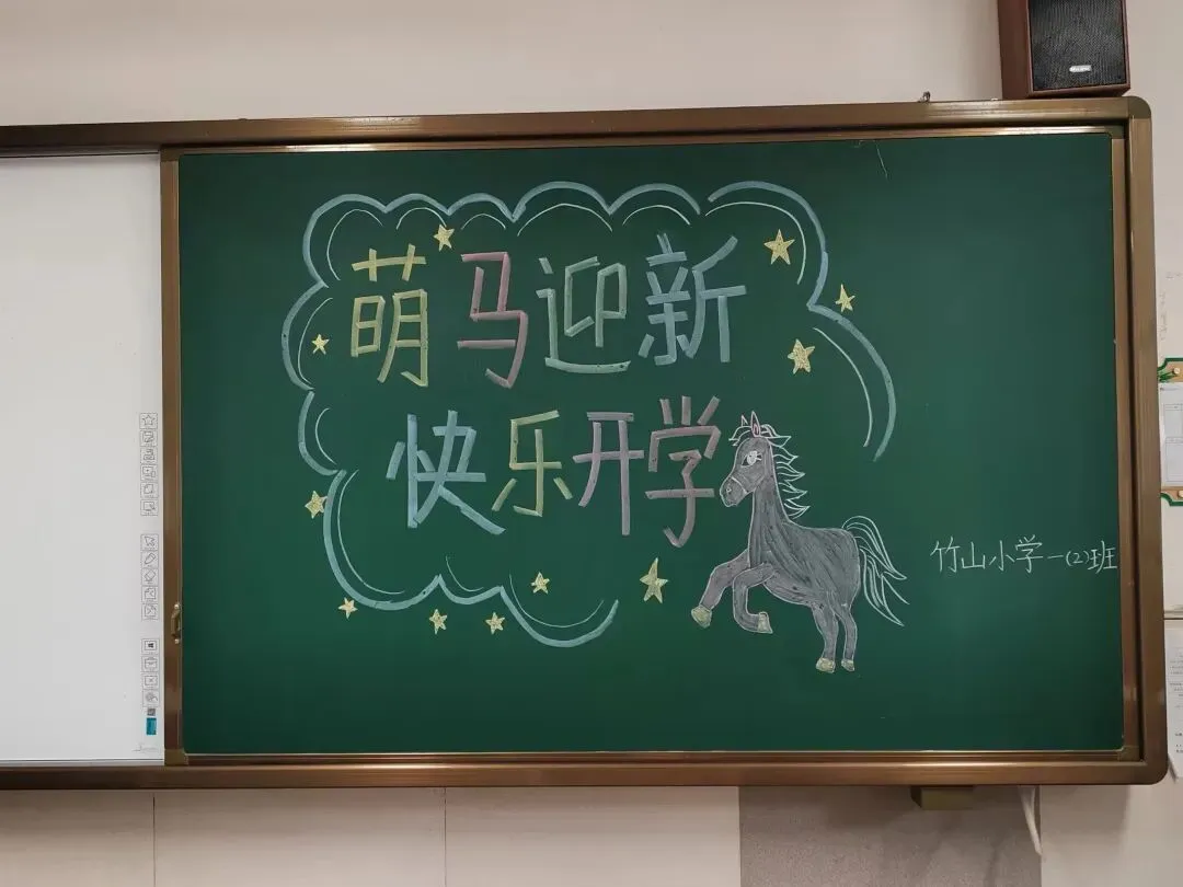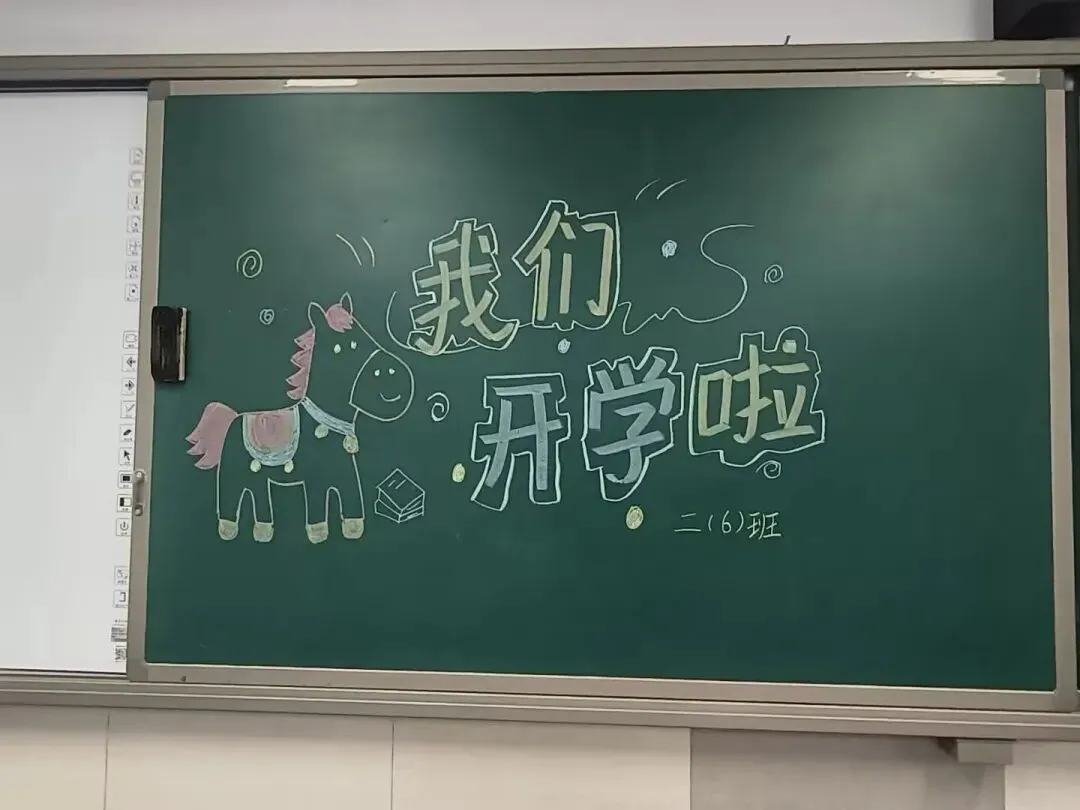 踏入教室,暖意瞬间涌上心头。窗明几净,桌椅成排,连新书都码得整整齐齐,整个教室透着清爽利落的气息。教室黑板上,马年板报色彩明丽,憨态可掬的小马插画格外吸引人。孩子们走进教室,看到这满是心意的布置,迫不及待地开始分享假期趣事,满心欢喜地开启新学期的美好时光。