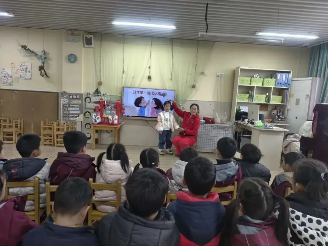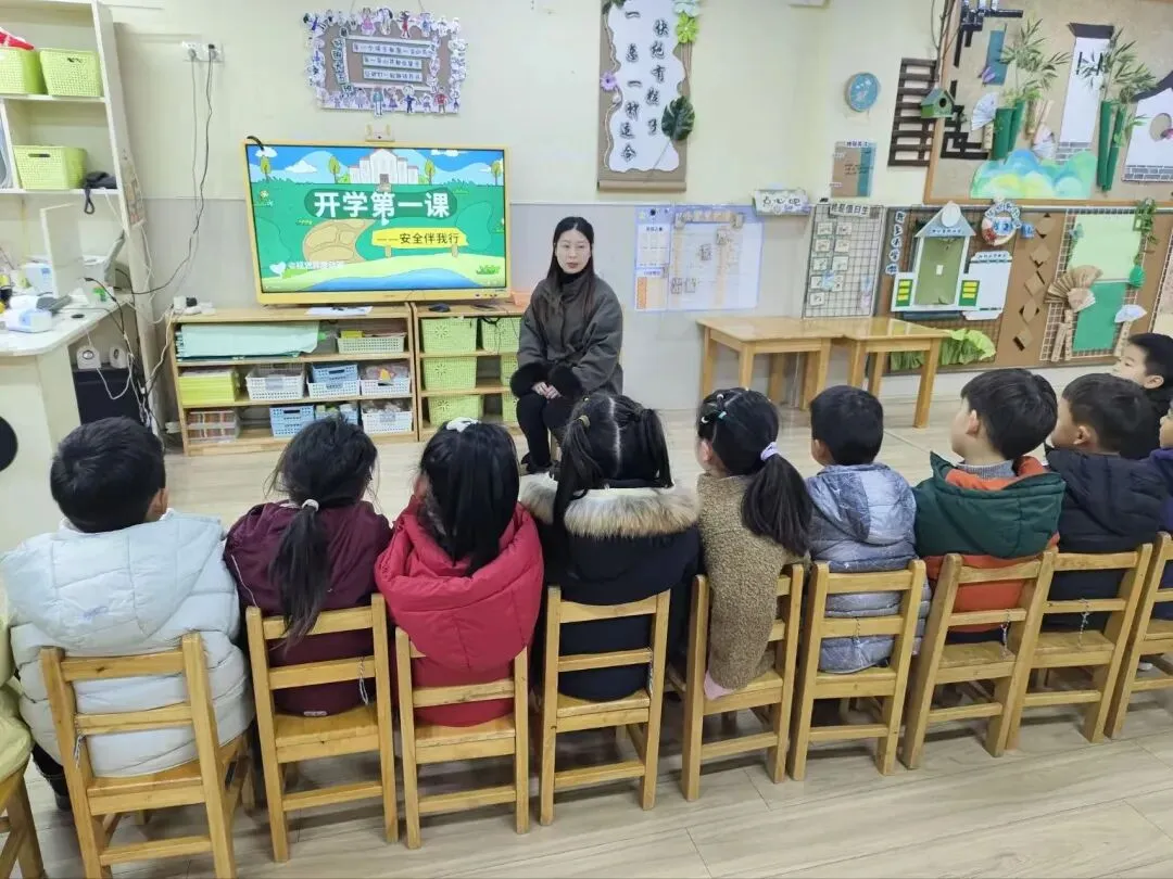 中班的宝贝们化身“分享小达人”,主动讲述寒假里的趣事——吃年夜饭、逛庙会、和家人出游,用稚嫩的语言传递着假期的快乐;开学第一课上,老师重点讲解了入园、园内活动、离园全流程安全,从“不携带危险物品入园”到“上下楼梯靠右行”,从“指定区域等家长”到“不跟陌生人走”,每一个安全要点都细致讲解、反复强调;同时,还巩固了良好的生活与学习习惯,引导宝贝们在新学期继续努力,稳步成长。