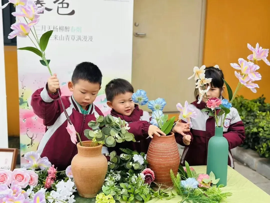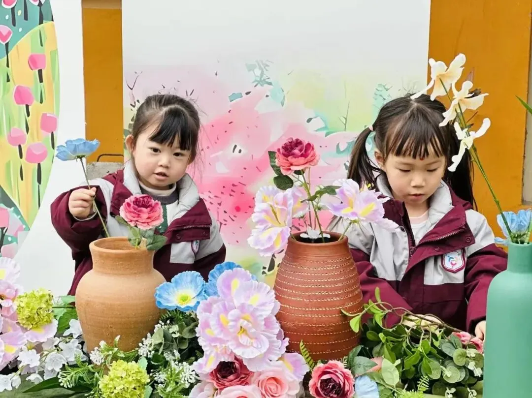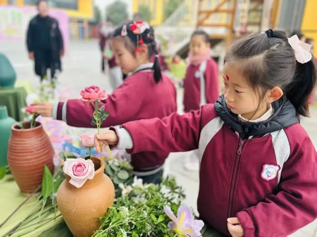 入园即遇春,插花添美好。入园时的插春环节温馨又治愈,孩子们亲手摆弄花枝,将春日芬芳插进花瓶,用鲜花装点幼儿园、装点心情。不负春光,初日野趣,在动手实践中感受自然之美,珍藏春日限定温柔。