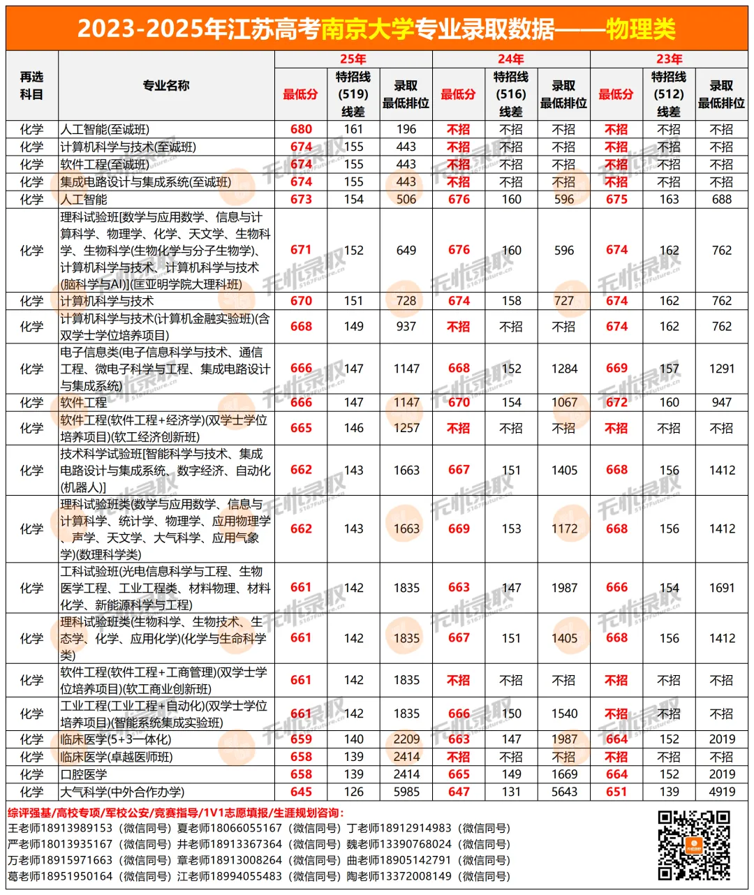 2025年南京大学物理类最高680分(人工智能【志诚班】),最低645分(大气科学【中外合作办学】)。