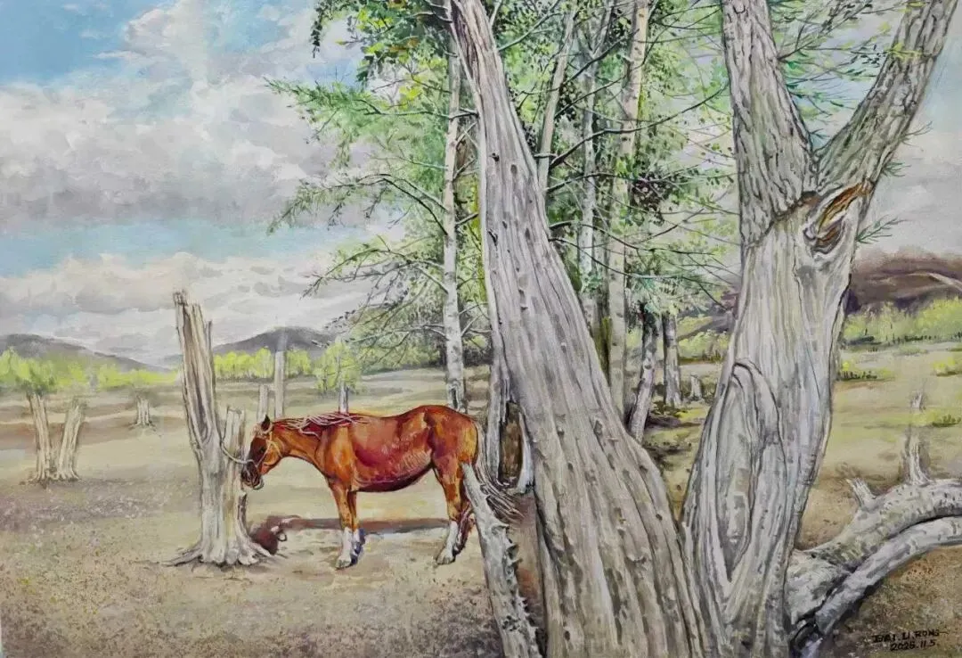 柏立荣《倦馬眠林》78x54cm