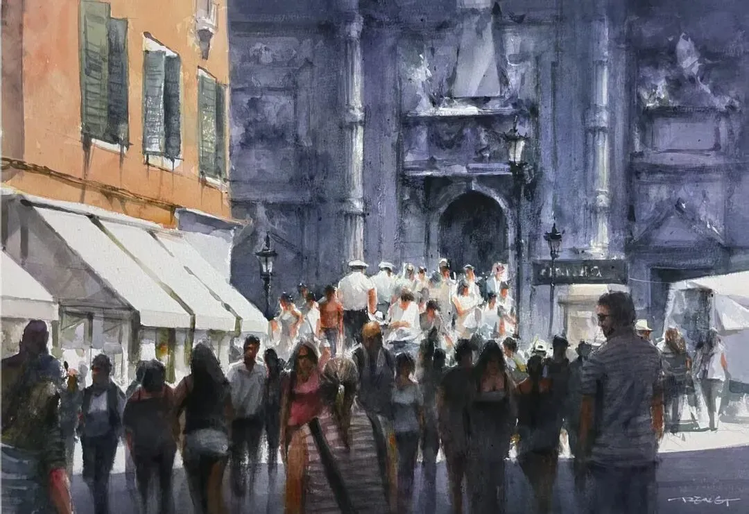 季鹏《威尼斯•通往圣莫伊斯教堂的桥》 55x36cm