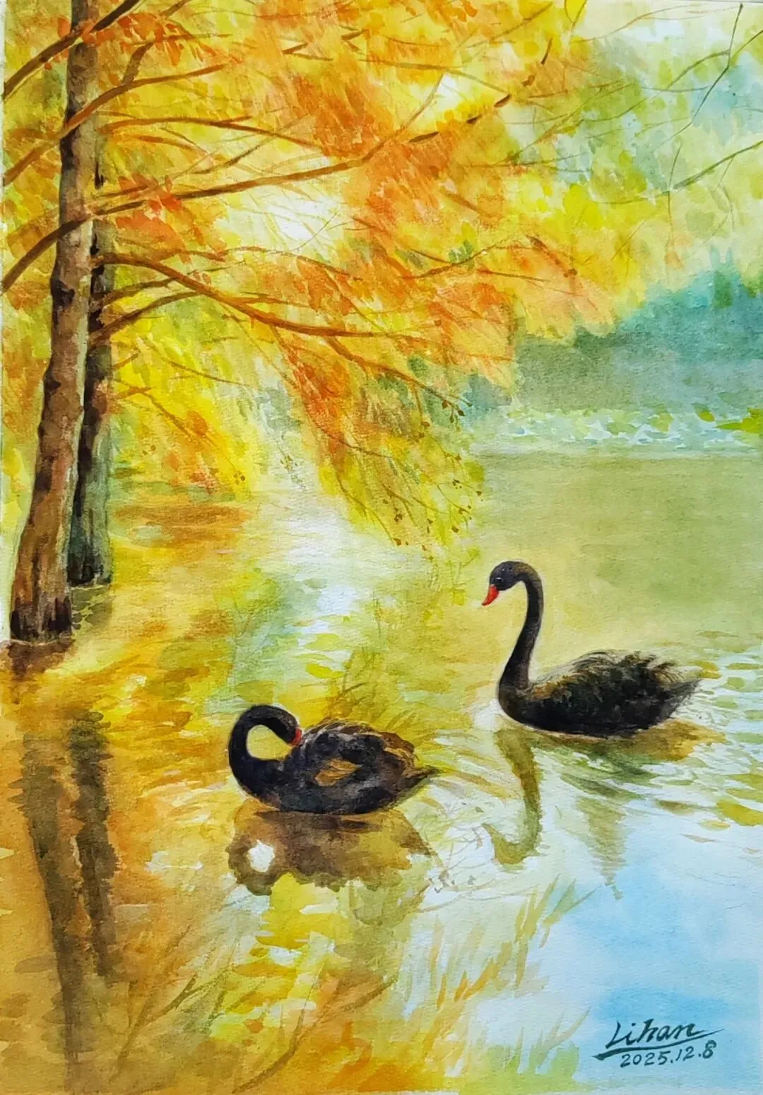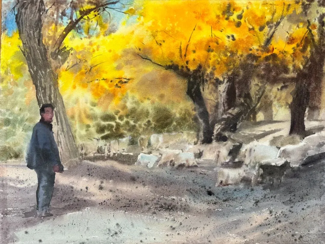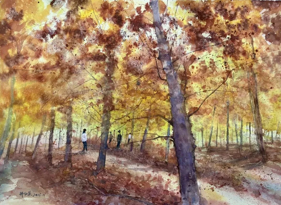 沈晓丽《漫步秋林间》56x38cm
