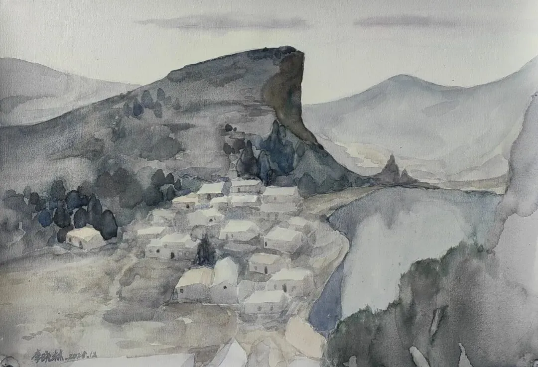 钱炜《苗寨风景》54x37cm