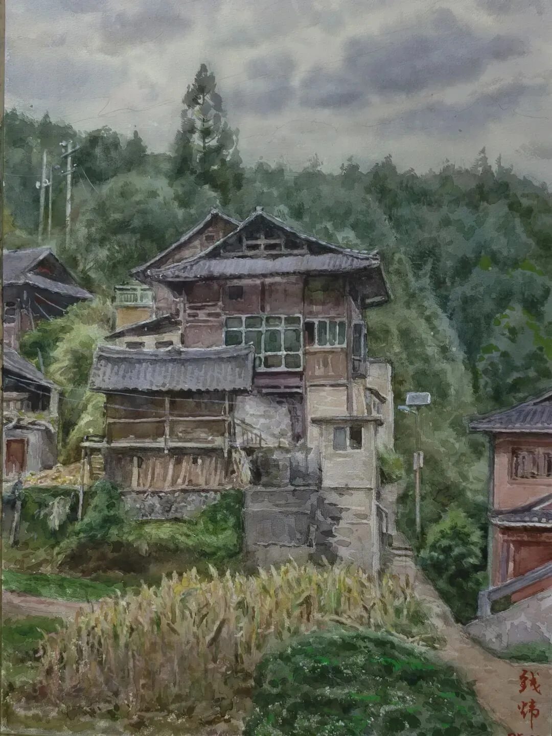 王紫茜《乡居•木楼岁月》76x53cm
