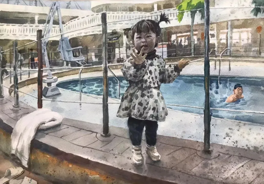 冉向捷《邮轮系列-我也要游泳》38x55cm