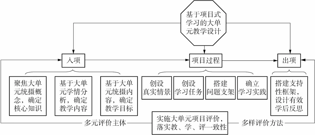 结合以上分析,本研究依据相关理论研究成果,确立基于项目式学习的大单元教学设计框架(见图1)。