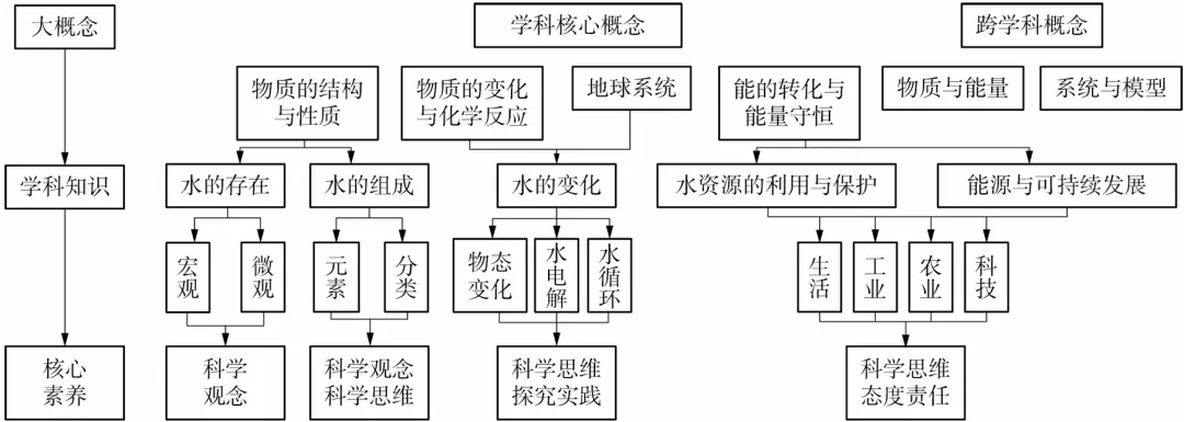 此外,华东师大版初中科学教材七年级第一章“水”和九年级下册第六章“能源与社会”主要介绍了自然界中水与能源的相关知识,包括地球上水的分布与组成、水的物态变化、液体混合物以及水资源的利用与保护等多方面内容。基于课标与教材分析,进一步统整并确立大概念与学科核心知识(见图2)。
