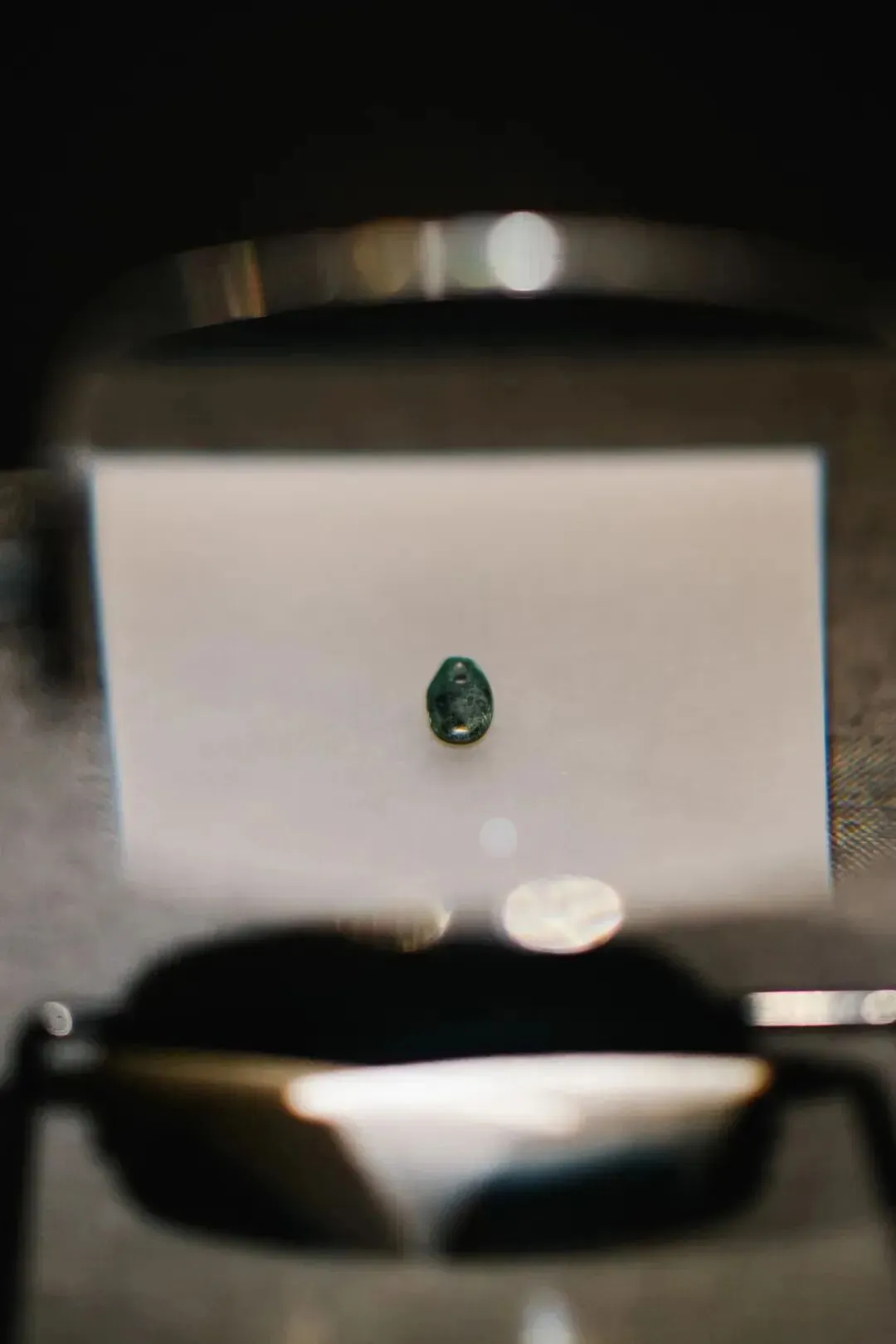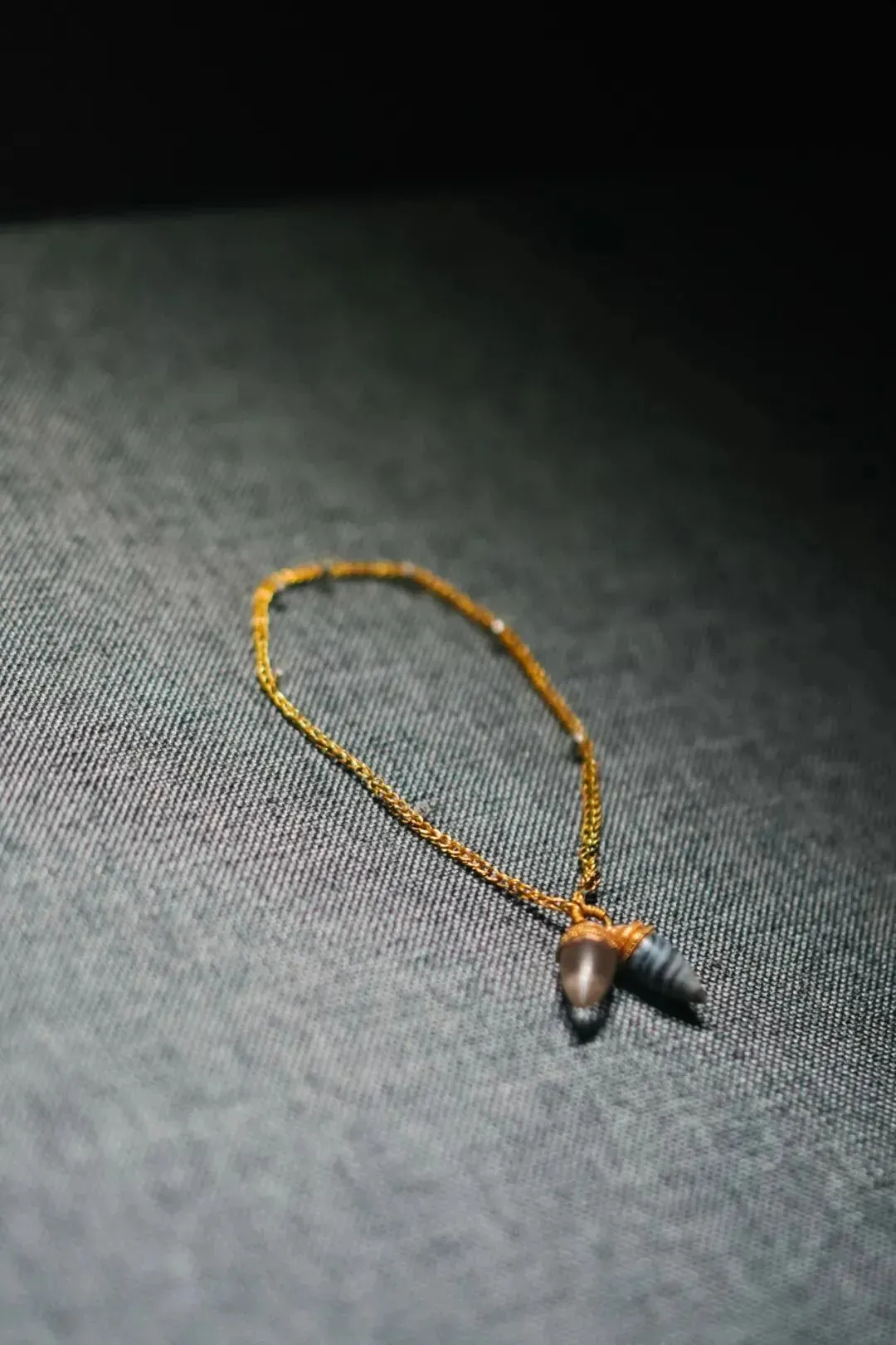 需要用放大镜才能看清的钻孔绿石,似乎原始人类也会佩戴项链装扮自己。