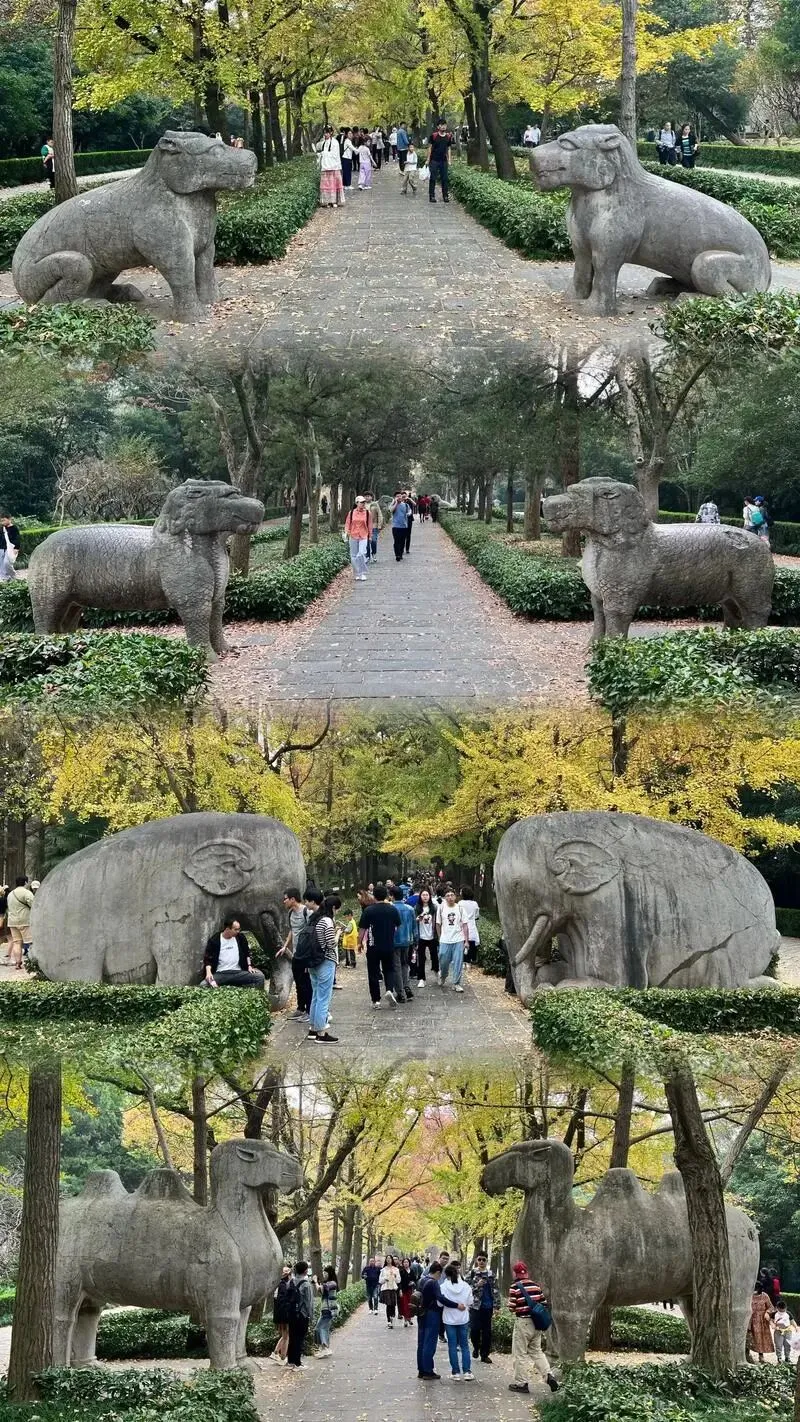 明孝陵的神道,依稀有曾被破坏后修复的痕迹,有耳朵被敲掉的,有鼻子被打掉的,有尾巴被破坏的。
