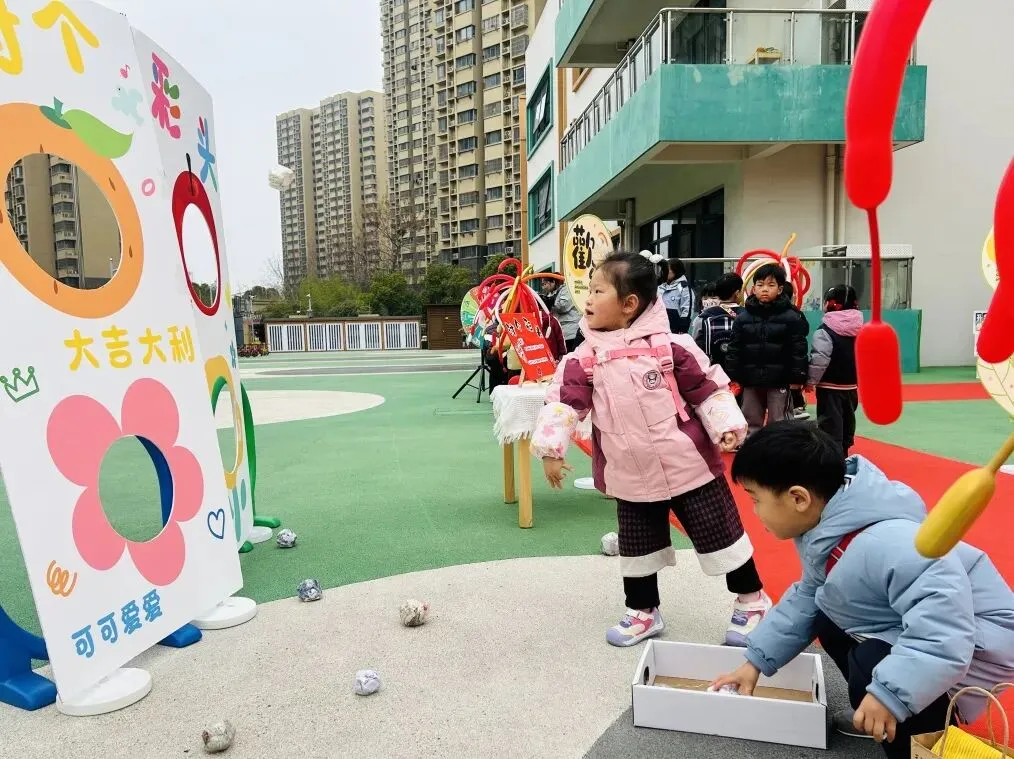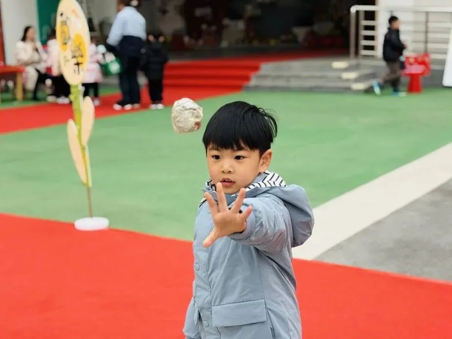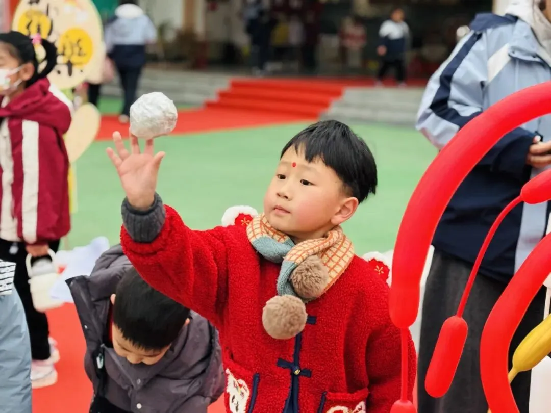 孩子们丢出的小沙包,在空中划出一道道欢快的弧线。孩子们用力丢出的是旧日的烦恼与不顺,稳稳接住的是新年的福气与好运。更寄托着老师对孩子们最真挚的祝福。