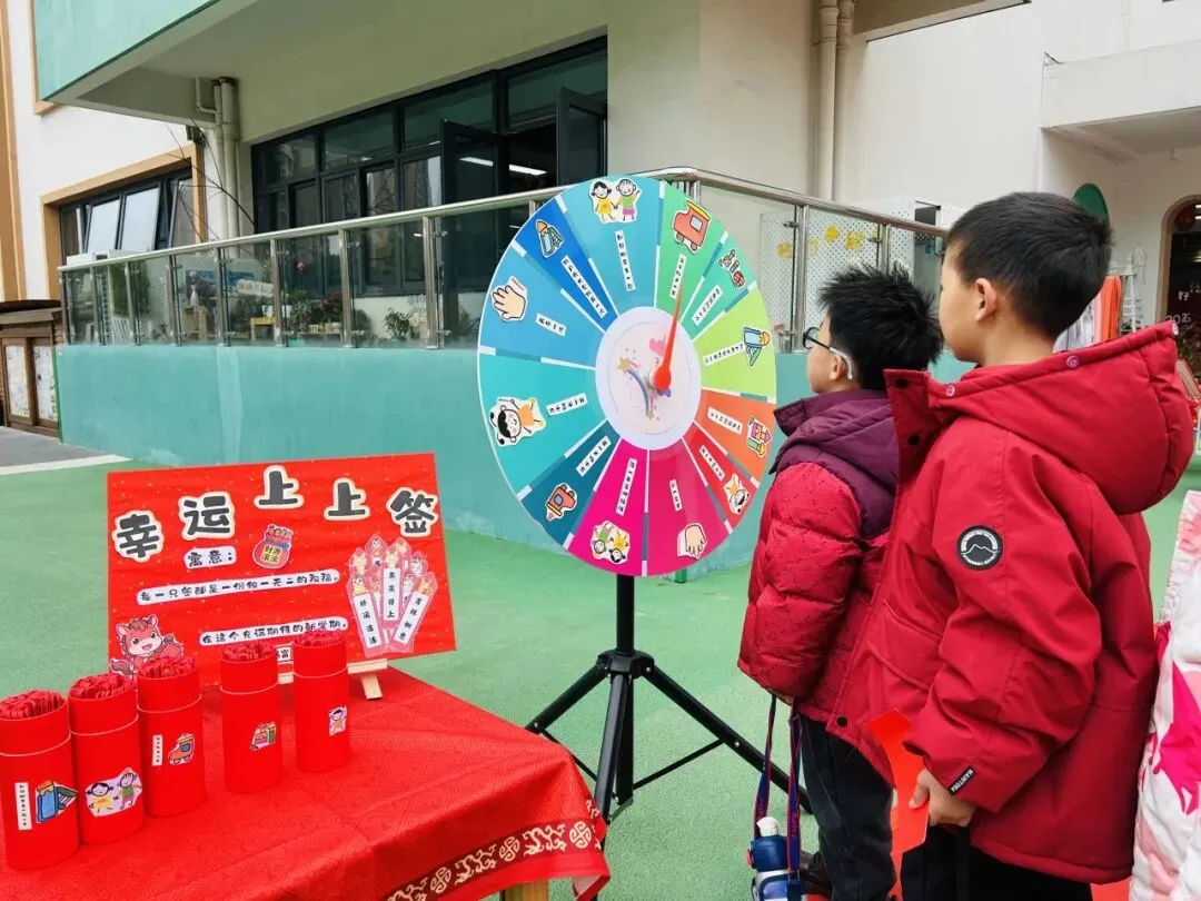 小小的转盘承载着满满的福气,一支支吉祥好运签是新学期长大的表现,也是我们小小愿望的实现。“做小排头”、“独自玩大型玩具”、“第一个选游戏”......在开学这一天实现了我们的小小愿望。