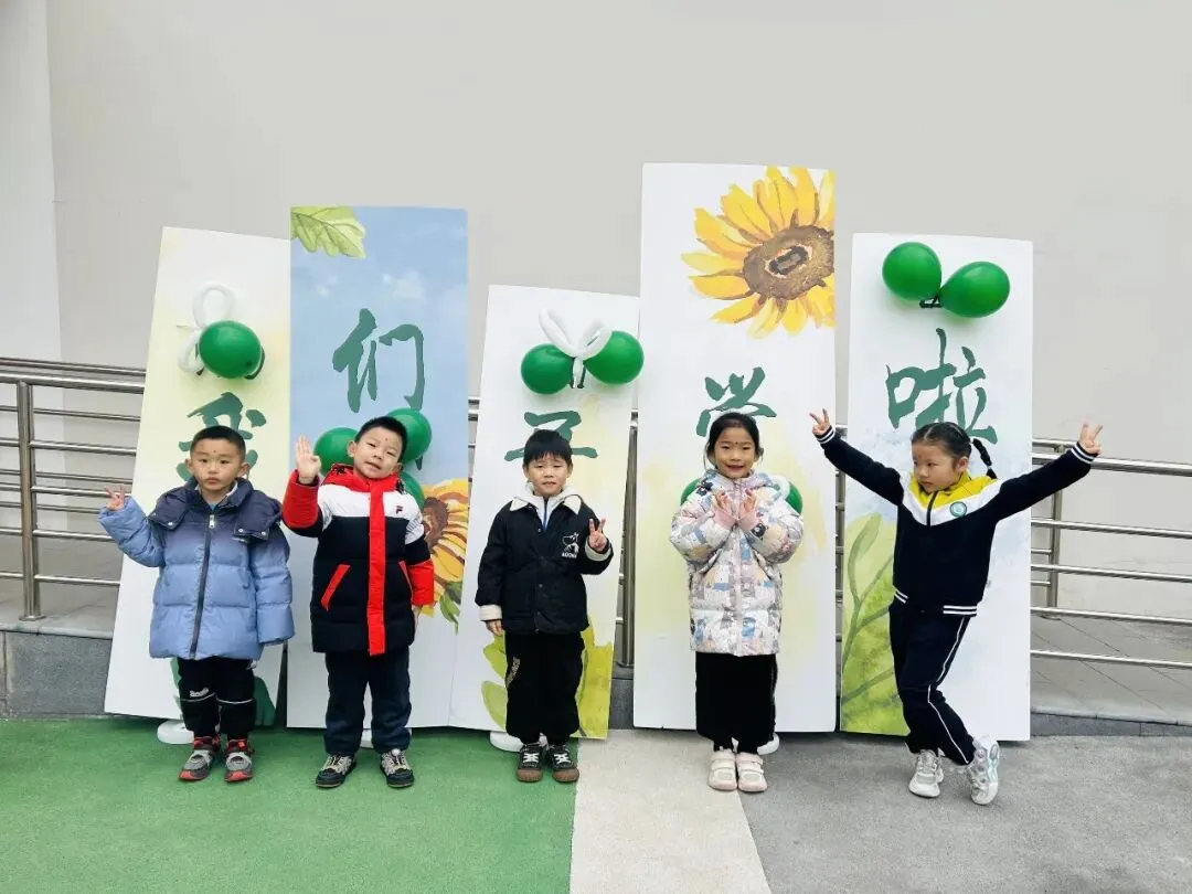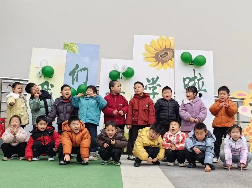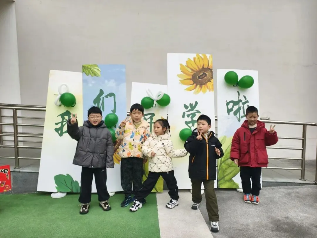 在温馨喜庆的开学打卡点前,孩子们自信驻足留影,一张张可爱的笑脸被镜头定格。每一张照片都是成长的印记,每一个笑容都是新学期最美的开篇。
