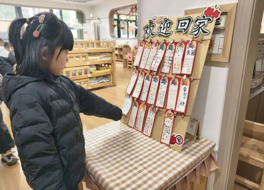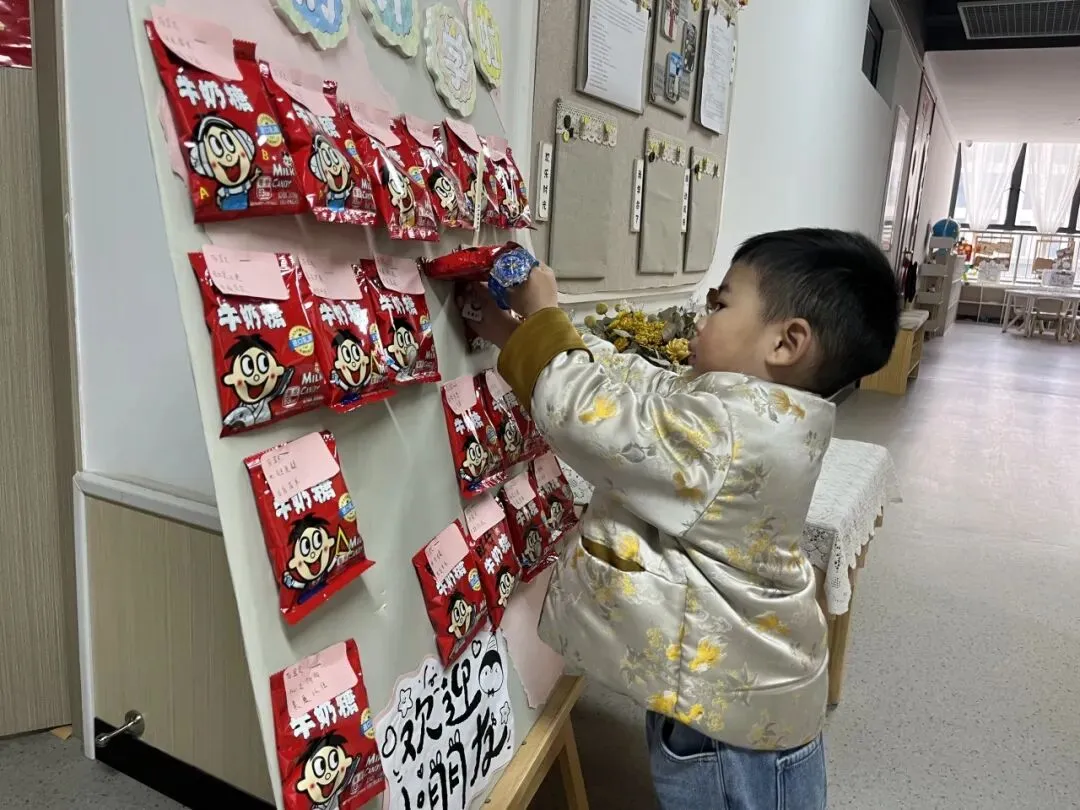 各班门口的创意签到台早已准备就绪,趣味满满又富有仪式感。小班的宝贝们用简单的涂色、添画的方式留下属于自己的开学小印记;中班的孩子们拿起画笔,在好运签上大胆表达自己的新学期愿望;大班的哥哥姐姐们则是大胆绘画、表达,以独特的自主创作的方式完成签到。