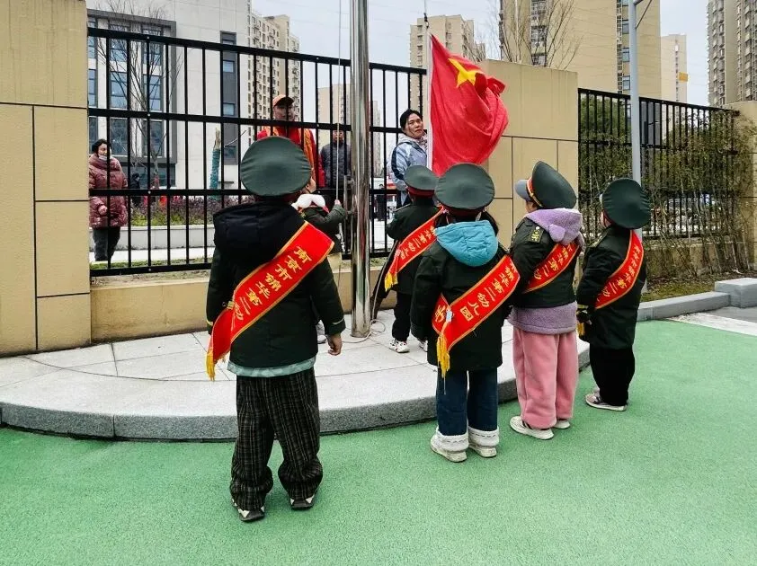 清晨的阳光洒满操场,小小护旗手们精神抖擞,护送着鲜艳的五星红旗走向升旗台。伴随着雄壮的国歌,国旗冉冉升起,爱国的种子在孩子们的心中悄悄发芽。