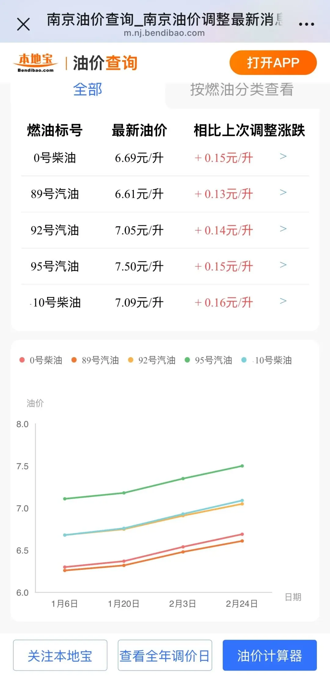点击【南京及全国油价趋势查询】