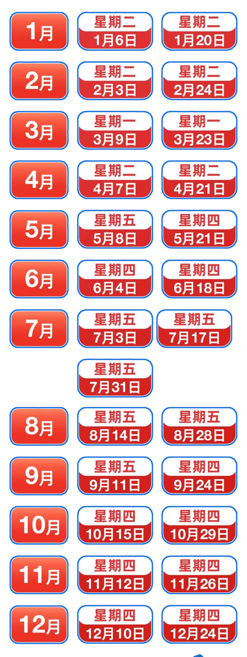 周期:每10个工作日有1个调整窗口