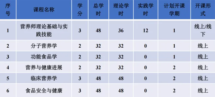 注:《分子营养学》和《营养与健康进展》两门辅修课程必选1门,即达到本微专业毕业要求须修完本微专业课程≥13总学分。