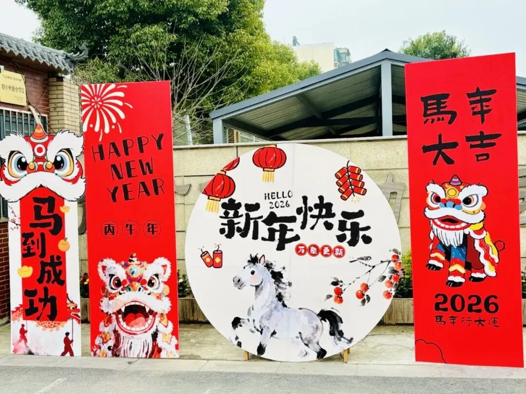 清晨的校园焕然一新,开学迎新牌、拍照打卡点……处处洋溢着新春与开学的喜悦。