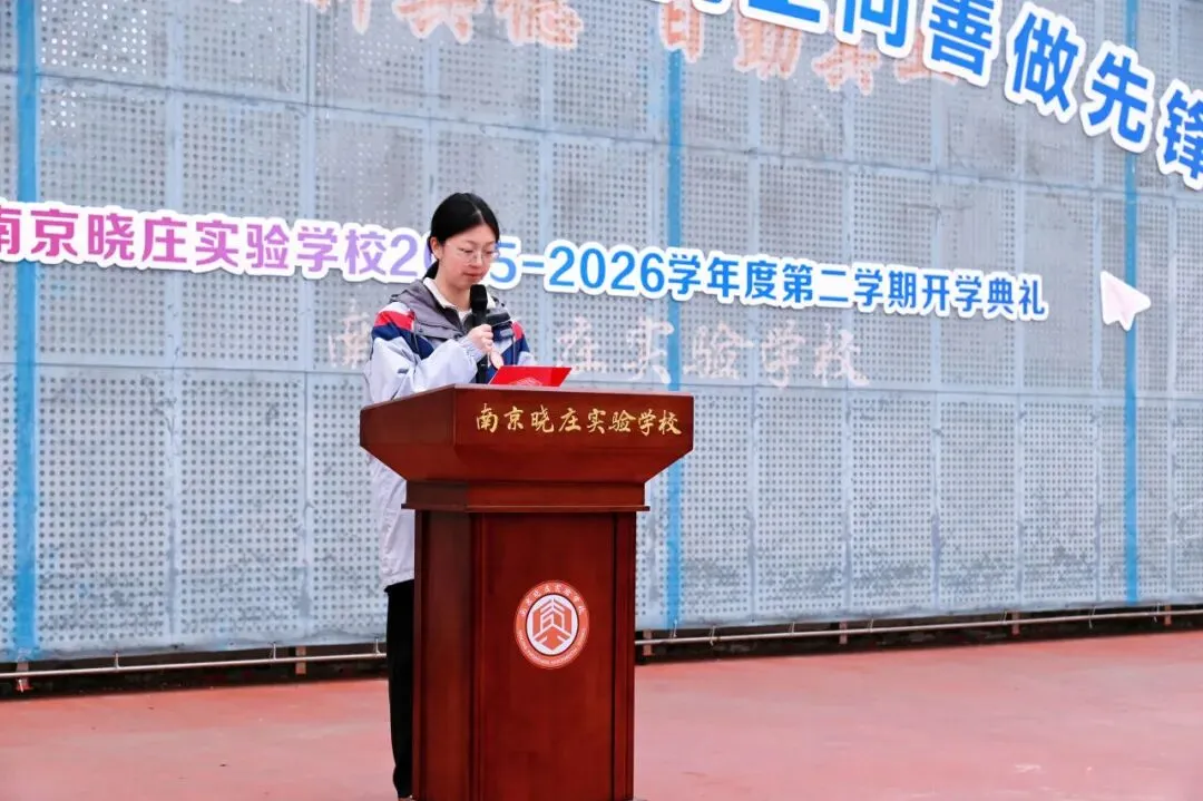 七年级4班的顾译文同学作为学生代表登台发言,这位从小学部直升的优秀学子,深情分享了自己在晓庄实验的成长蜕变,感恩学校的培育与老师们的悉心指引,以优异表现印证耕耘必有收获。回望寒假师生对“知行合一”的践行,分享收心、深耕、向阳三个成长关键词,倡议同学们调整状态、踏实学习、全面发展,号召大家以龙马精神策马扬鞭,以知行践行初心,在校园成就更好的自己。
