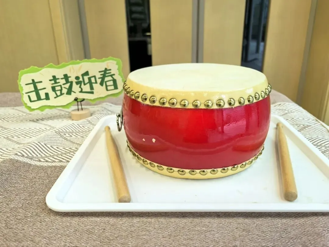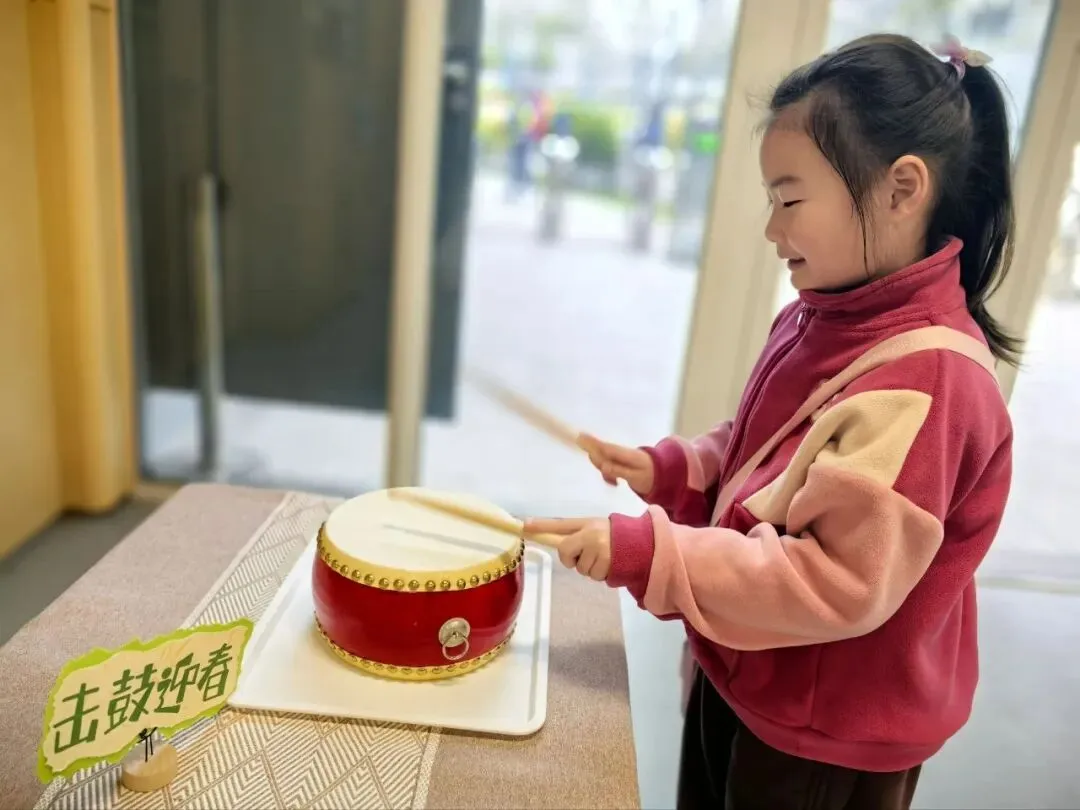 孩子们手持鼓槌,用力击鼓,“咚—咚—咚—”,阵阵鼓声寓意着一鼓作气,迎接新学期的到来。