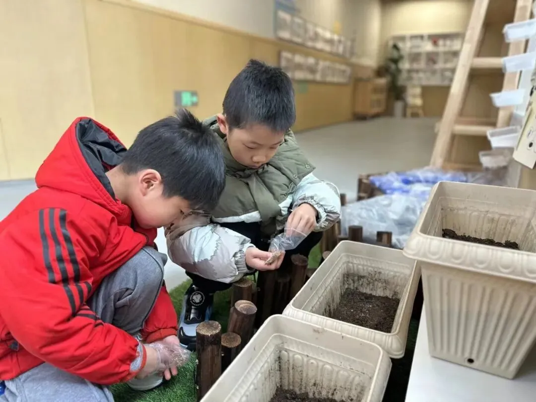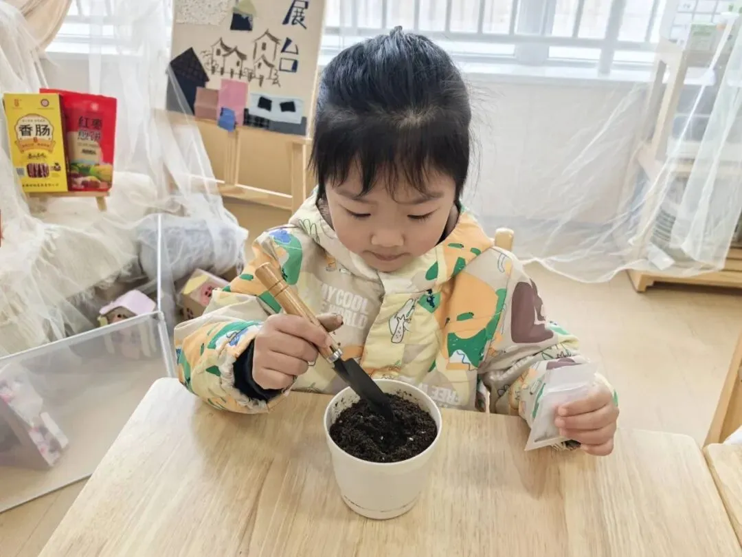 在种植园地和班级自然角,孩子们拿起小铲子松土、挖坑、播种、浇水,将种子小心翼翼地种下。在亲近自然、动手播种的过程中,孩子们感受着春天孕育的生机与希望。