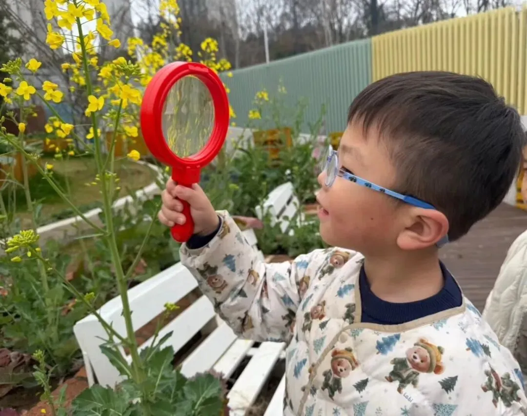 新学期里,幼儿园有哪些变化呢?带着好奇,孩子们纷纷拿着放大镜,蹲在花坛边、趴在草地上、仰在树枝下,一寸一寸地寻找着春天的痕迹。那些我们习以为常的风景,在他们眼中,都是惊喜的发现。
