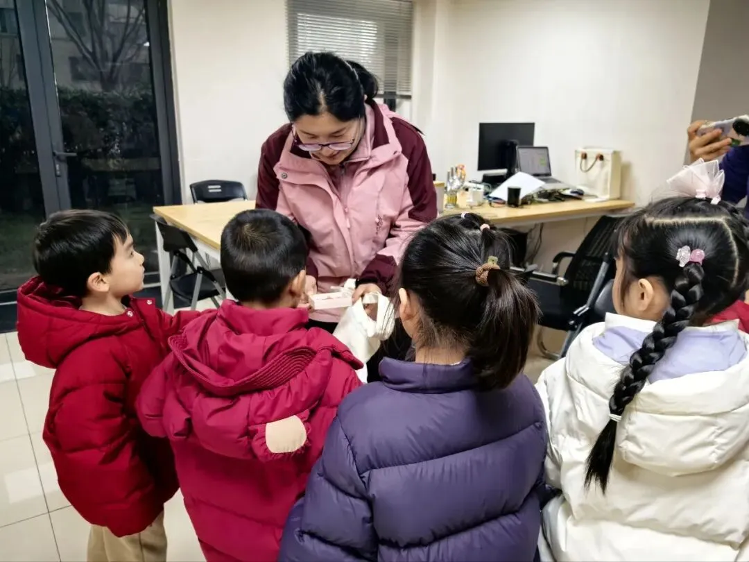 孩子们围坐在一起,分享着寒假的故事。
