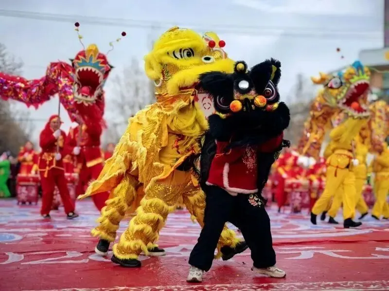 民族风情与非遗魅力在展演中绽放光彩,成为铸牢中华民族共同体意识的生动载体。都来提巴格街道的艾特莱斯舞蹈绚丽飘逸,与扇子舞的繁花绽放相映成趣,非遗技艺展示让观众近距离感受传统文化的匠心传承;英也尔镇的哈萨克马文化表演独具特色,雄姿英发的骏马踏歌而来,与欢腾的秧歌共同舞出各族群众的幸福生活。达达木图镇作为伊犁河谷“蔬菜大镇”,将乡土特色融入社火,金黄长龙绕蔬菜大棚盘旋,红火狮子在菜畦边翻腾,马面裙的古韵与哈萨克族、维吾尔族小巴郎的竹马舞相映成趣,成为乡村全面振兴与民族团结的鲜活写照。