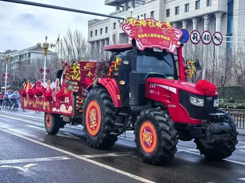 从闹市区到居民集聚区,鼓点铿锵传情,舞姿翩跹表意。伊犁河路街道的战马与灯笼舞相映成趣,黑神话悟空的创意表演让传统与现代对话;托格拉克乡的怀旧二八自行车方阵与丰收花车勾勒出乡村全面振兴的美好图景,金黄玉米、火红辣椒满载着丰收的喜悦;艾兰木巴格街道以“丝路同心”为主题,再现“汉家公主和亲西域”的历史佳话,龙狮欢腾、秧歌潮涌,诠释着各民族交相辉映的中华文脉。