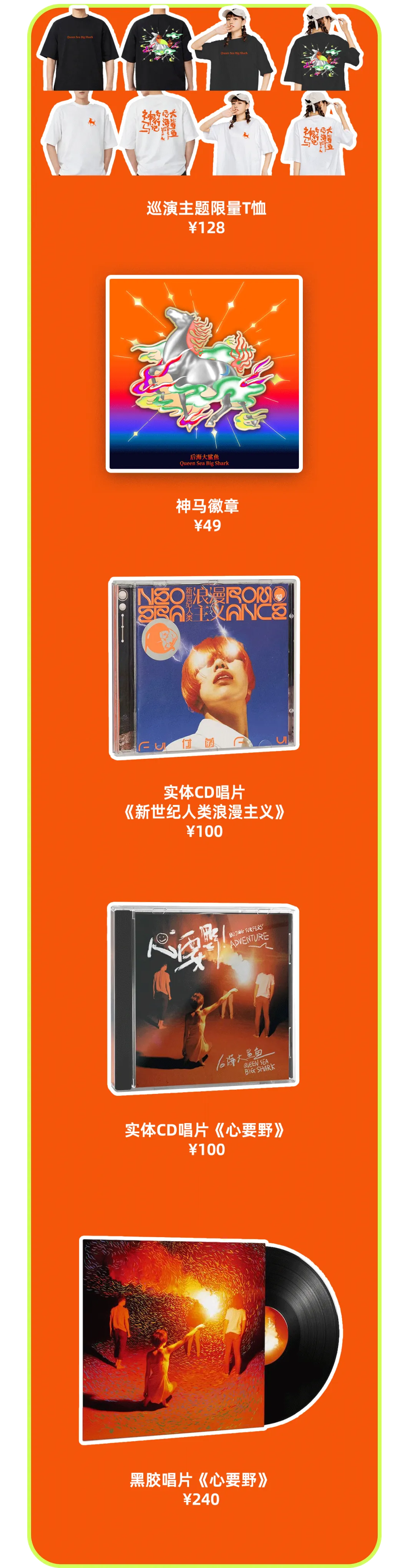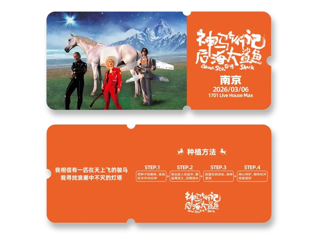 本场演出,我们依旧为每位到场的乐迷朋友准备了「实体票根」,欢迎现场领取,希望这个小小的纪念品,可以为你储存一段与后海大鲨鱼的美好回忆。