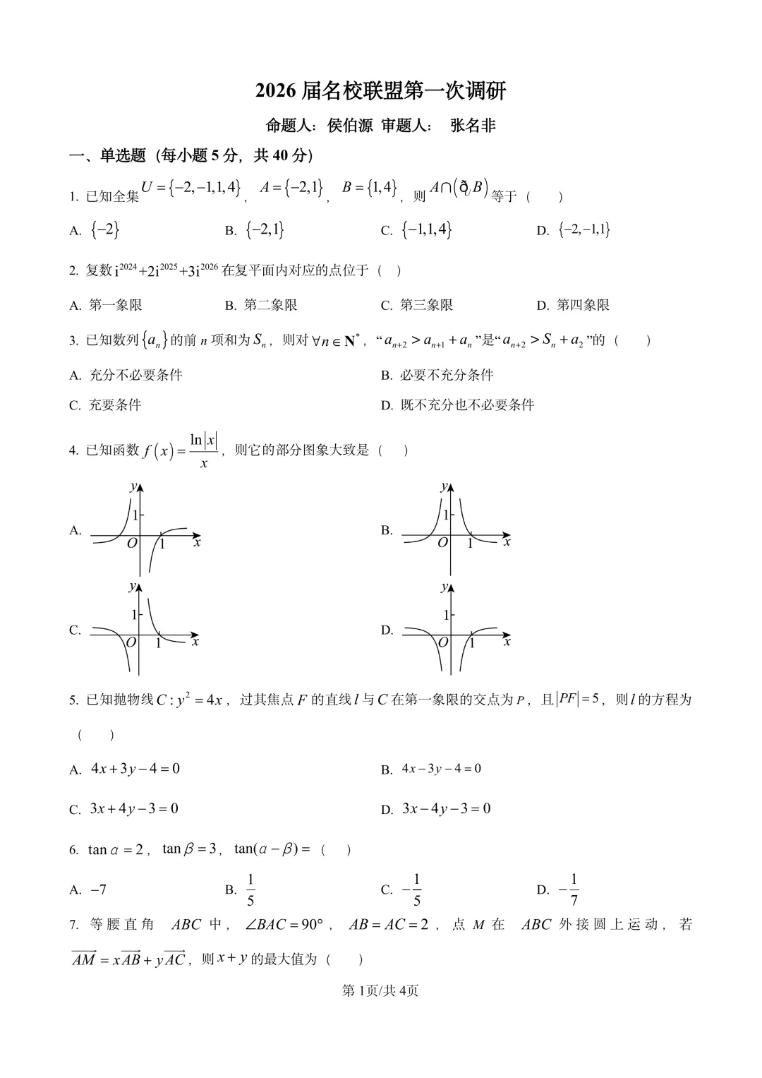 >江苏南京市六合区名校联盟2026届高三下学期第一次模拟考试
