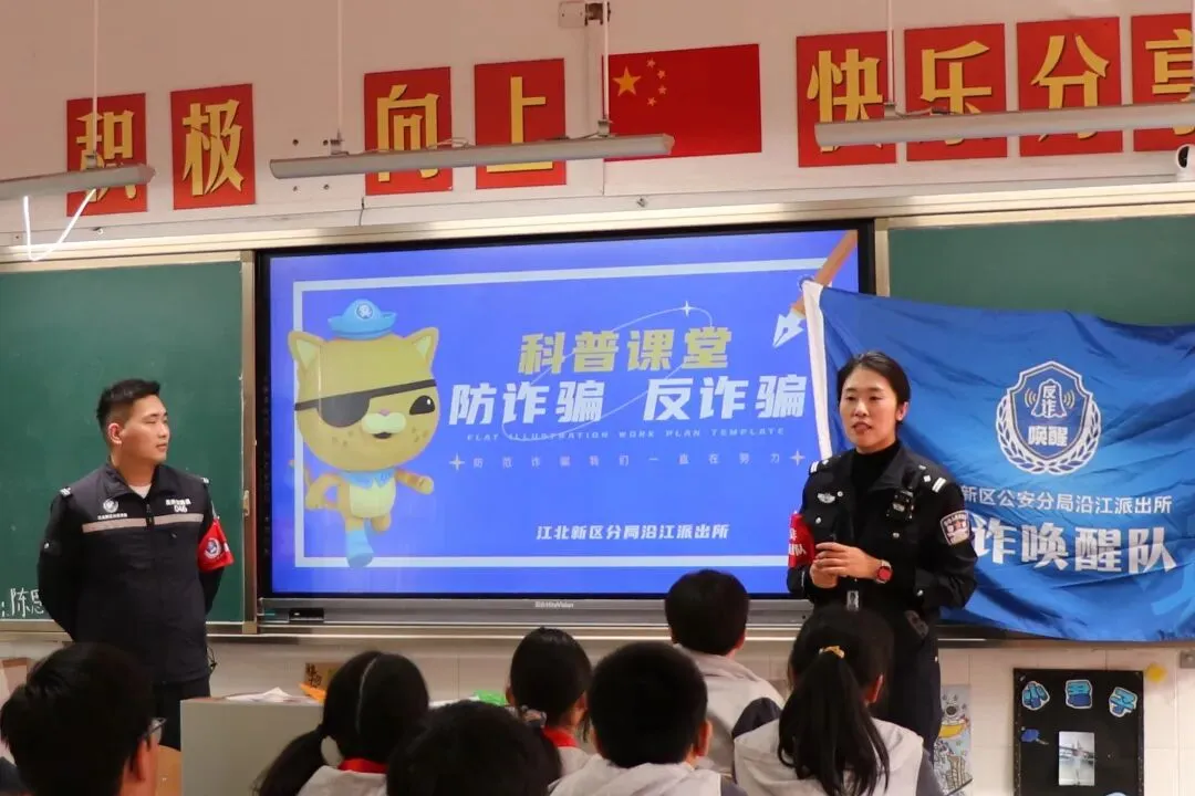 南京江北新区分局民警为小学生们上好开学反诈第一课,增强学生们防范电信网络诈骗意识 晏子霖/摄