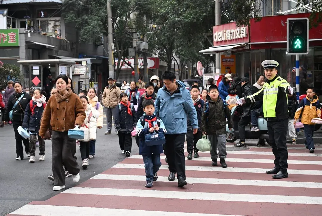 开学首日,针对上下学高峰期车流、人流集中的特点,南京警方全面启动“高峰勤务”和“护学岗”机制,1782个公安护学岗再次“上线”。在上学、放学时段,执勤警力提前到岗到位,采取“定点值守+动态巡逻+视频巡查”相结合的模式,在校门口及周边重点路段疏导交通、维护秩序。与以往不同的是,春季开学除了执勤民警以外,相关部门负责人带头上岗参与护学勤务,站好开学守护“第一岗”。