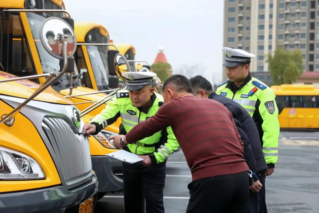 开学前夕,交管支队六合区大队民警韩永恒对辖区校车展开“全身体检”。今年已是韩永恒从事校车源头管理的第6个年头,他对全区120辆校车的情况了然于心。检查现场,韩永恒半蹲在地上,仔细查看轮胎花纹深度和磨损情况,从灭火器到安全锤,每一处细节逐一“过筛”。在完成车辆硬件检查后,他还对校车负责人进行安全提示,要求严格落实日常维护和动态监管制度,确保车辆始终处于最佳运行状态,用最严标准守住校车安全底线,为新学期铺就平安上学路。