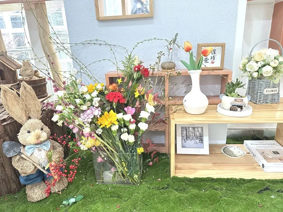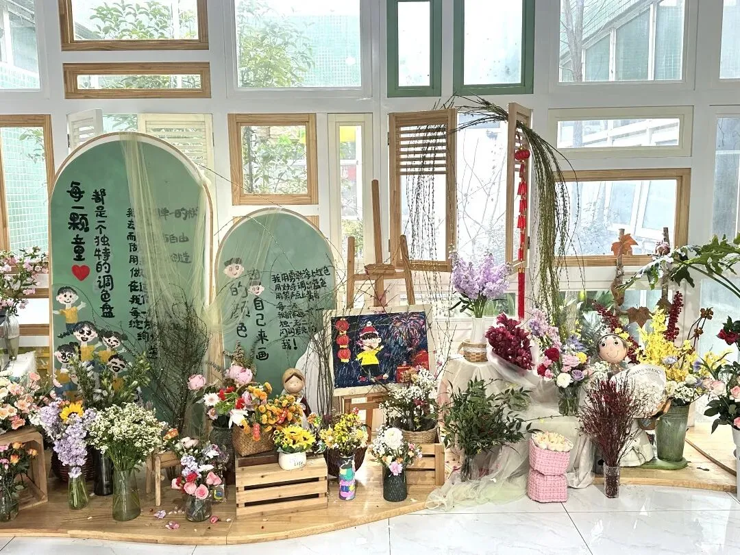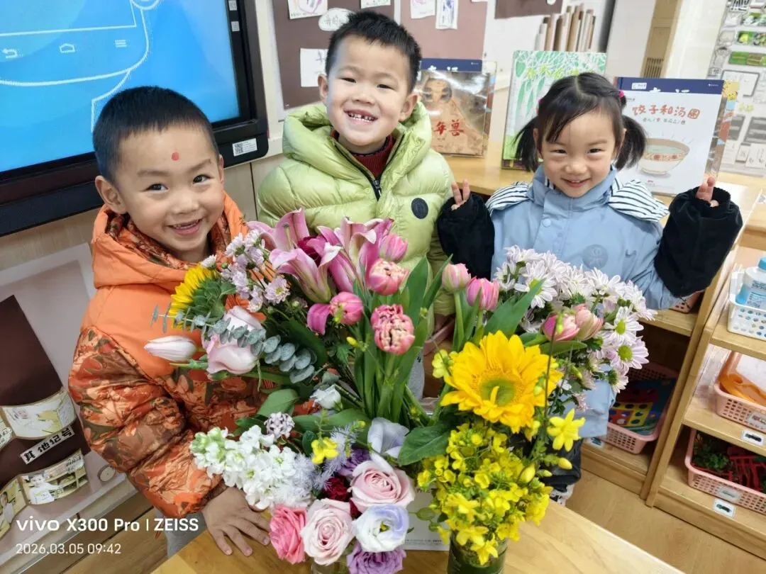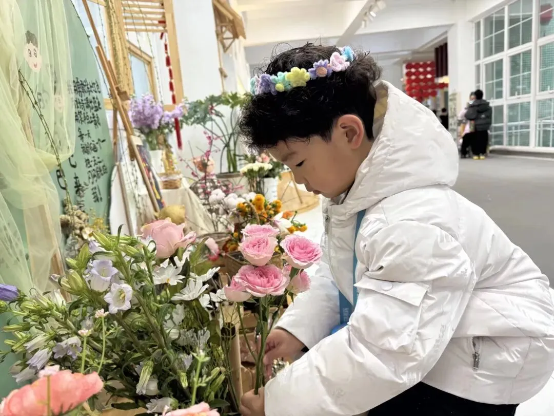 仪式最后,幼儿捧着鲜艳的花束、嫩绿的柳枝,认真地将花枝插进花瓶中。小手轻轻摆弄花枝,让春日的色彩绽放在校园的每一个角落。插春不仅让幼儿感受自然之美,更在动手操作中体会春日的生机,让“春”的美好扎根心底。