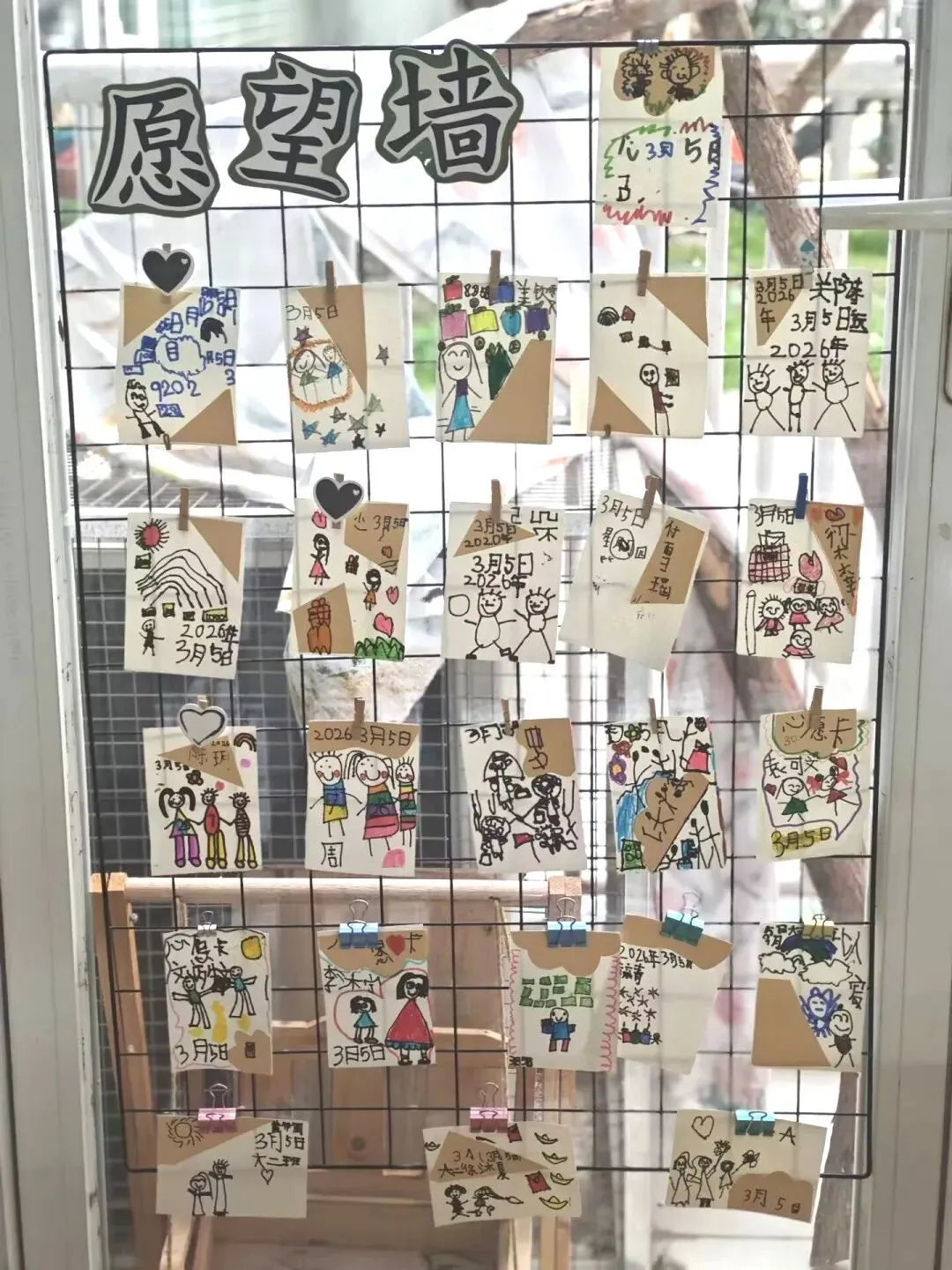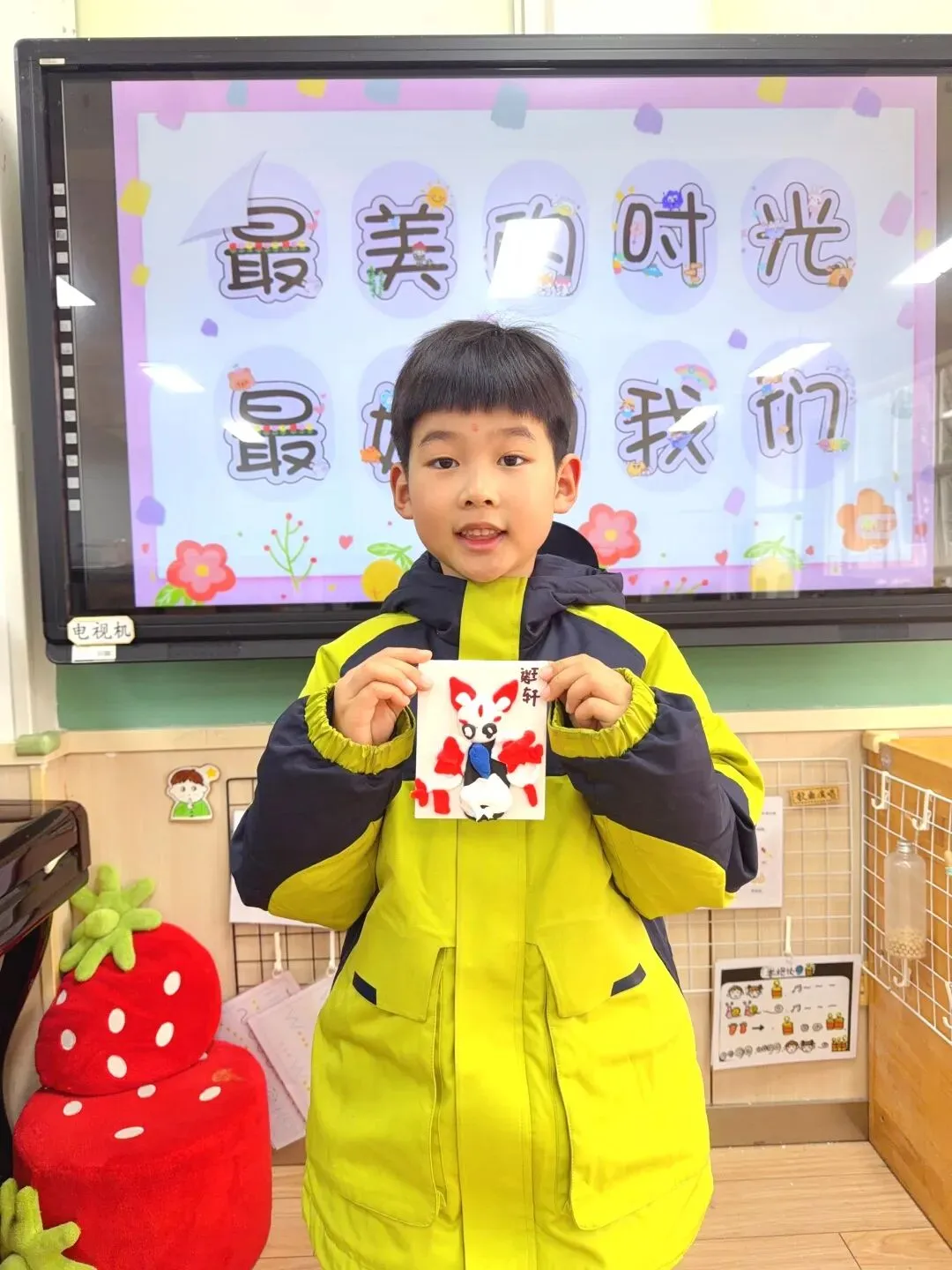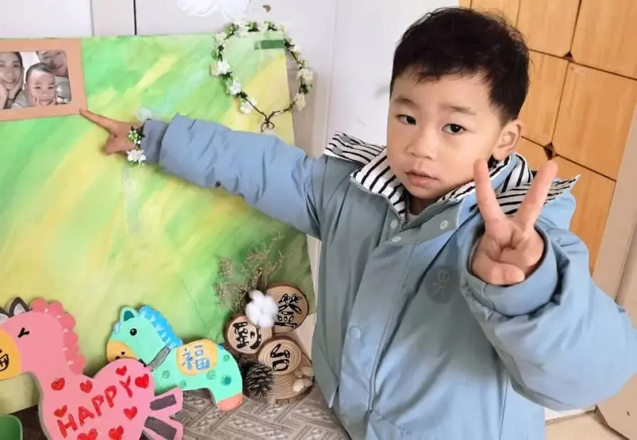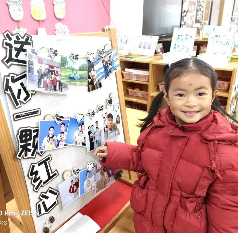 小班的幼儿带来了寒假的温暖记忆——全家福。在“我爱我的家”主题签到板前,他们认真印下小手印、画上小涂鸦,再把照片小心翼翼地夹上展示板。小小的仪式,满满的幸福。