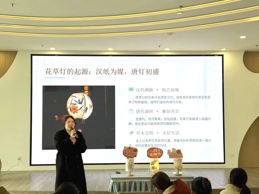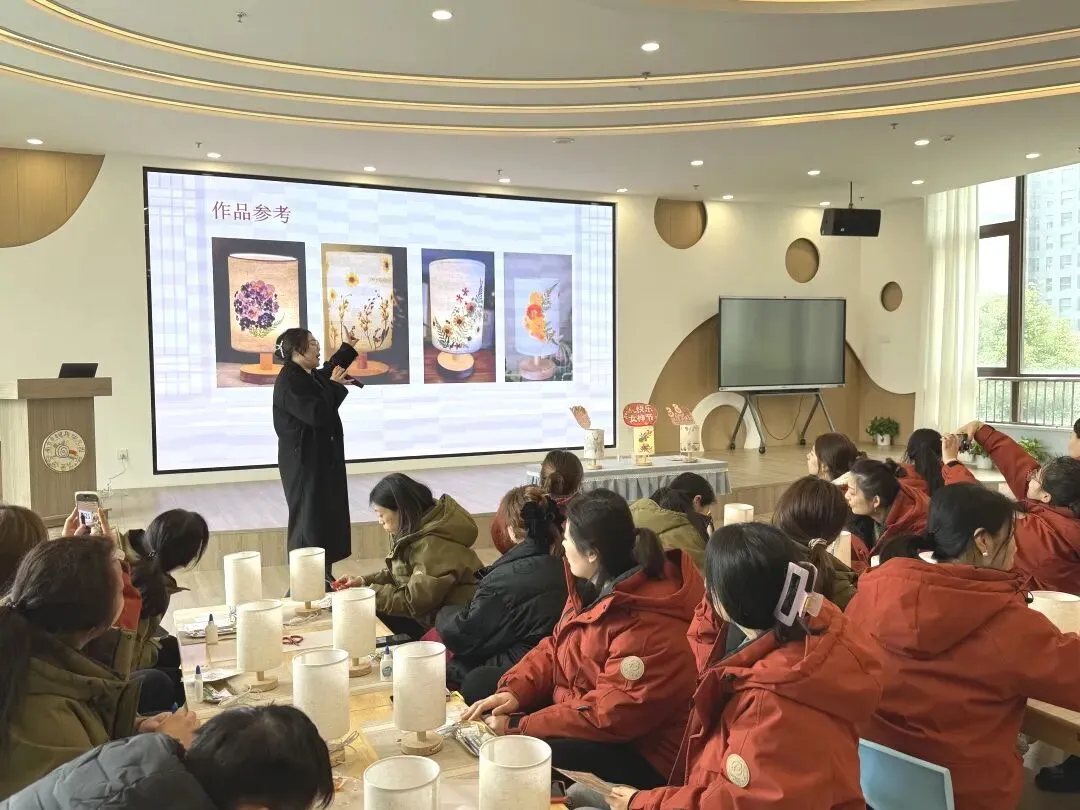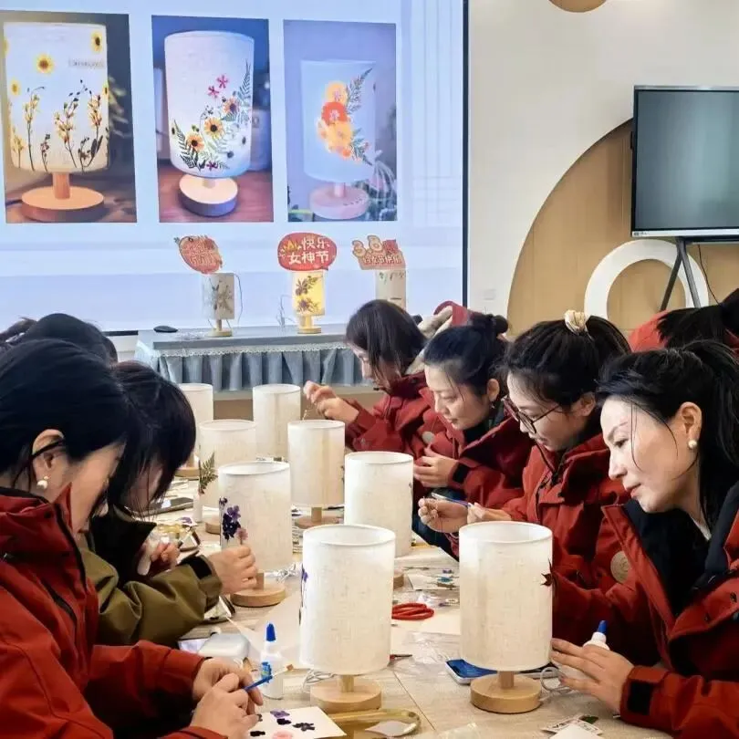 2026年3月4日南京市创意路幼儿园开展了“以花为礼,灯暖巾帼” 古风押花台灯手作活动。全体教职工欢聚一堂,以巧手制花灯,以温情赴美好,共度温馨雅致的节日时光。