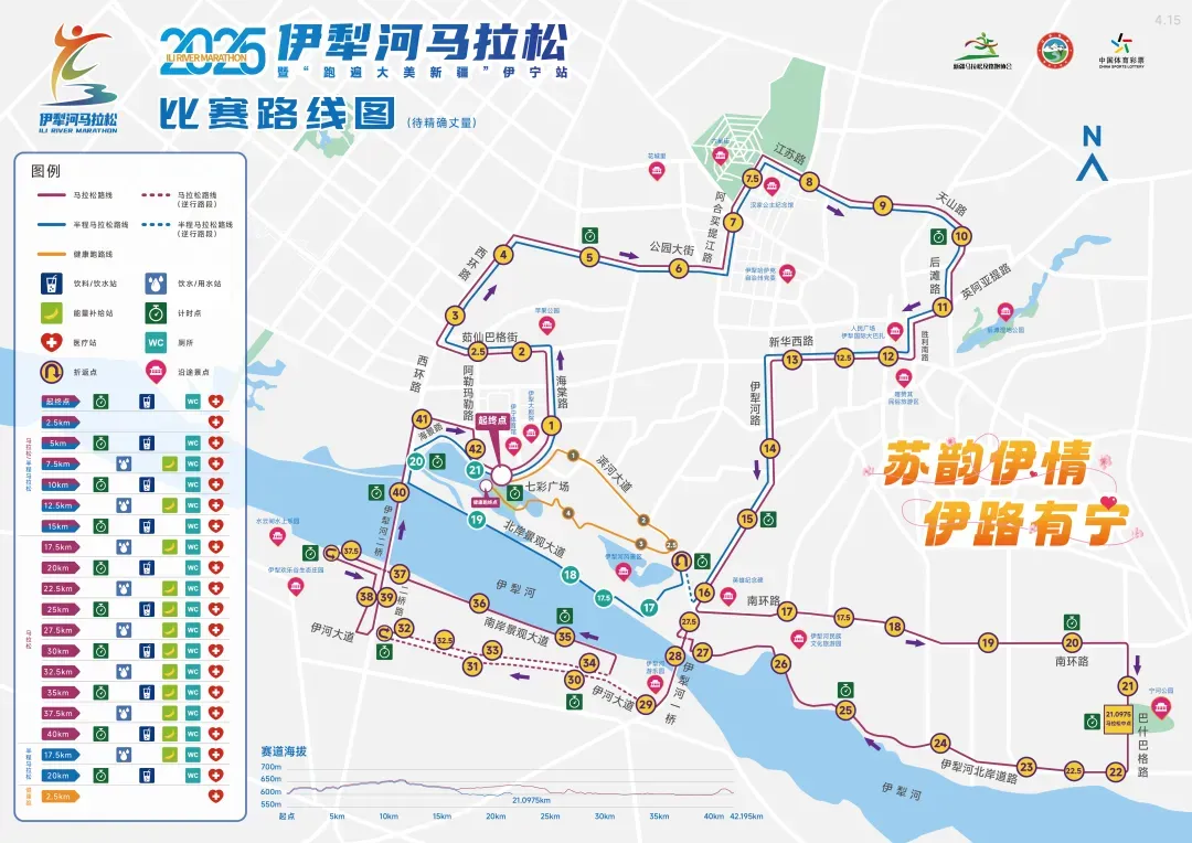 参考比赛线路:(以下为2025新疆伊犁河马拉松比赛线路,仅供跑友参考)