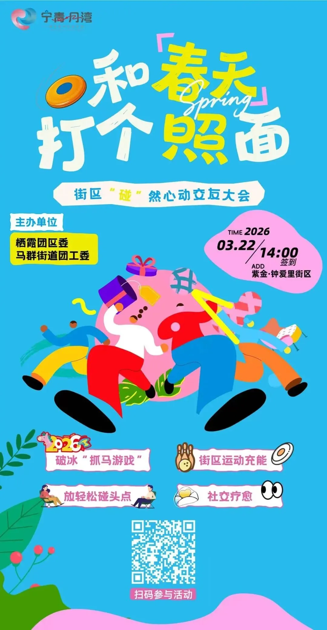 春天的仪式感不只是赏花踏青,更是换上轻快的春装,走进紫金·钟爱里和一群有趣的人碰出心动的火花。3月22日(周日)14:00,紫金·钟爱里街区 × 栖霞团区委 × 马群街道团工委联合呈献 “碰”然心动交友大会。详情