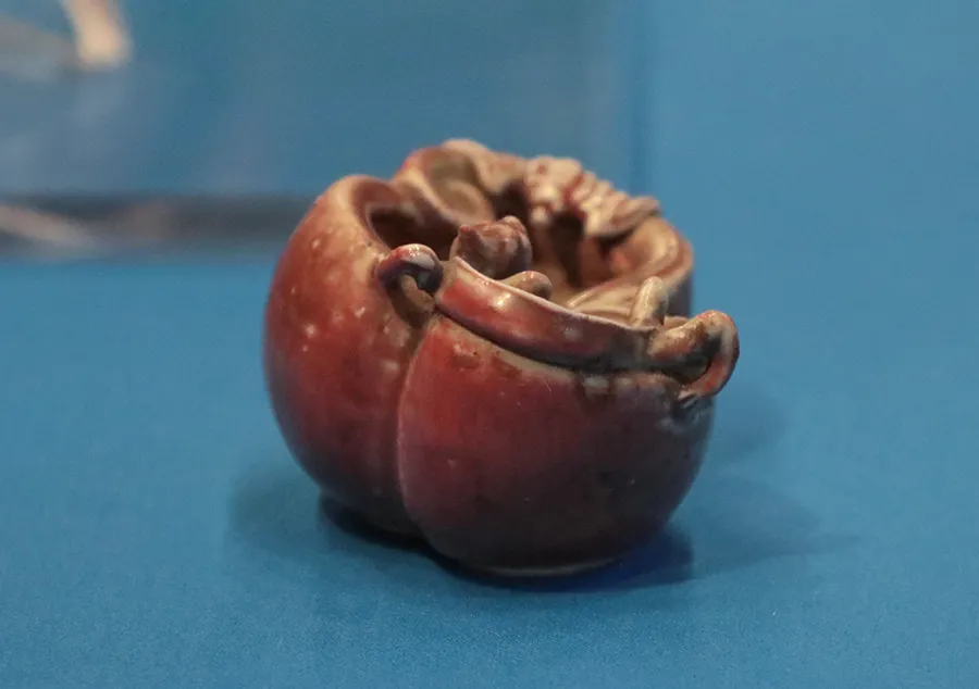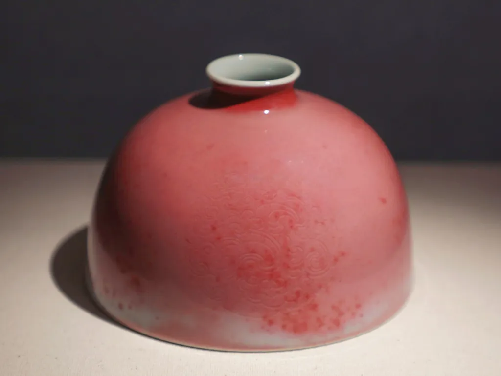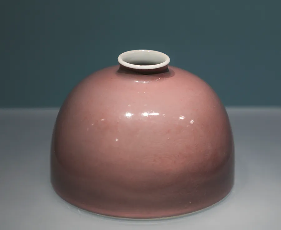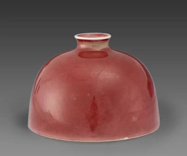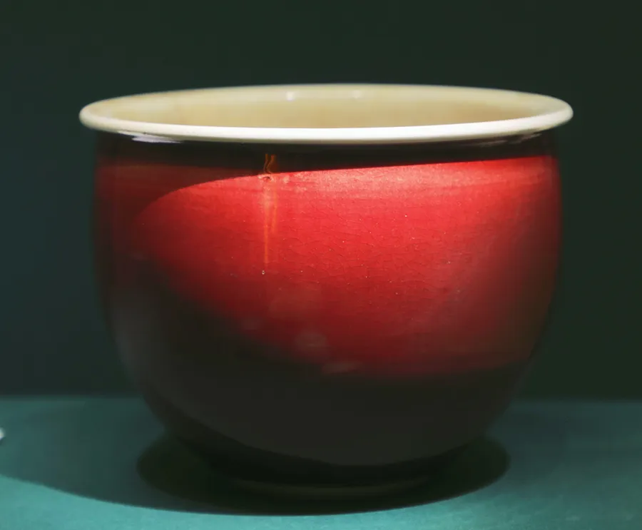 红釉是中国瓷色里的晚生子,烧成条件太苛刻,在古代没有仪器,全凭窑工的经验,最难把握。偏偏中国人历来尚红,一代代匠人,摸索了上千年,直到元明时候,使用含铜的釉料,才慢慢摸着了高温红釉的门道。
