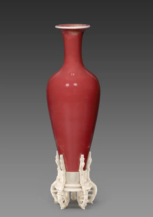 在康熙晚期,康熙四十四年至五十一年(1705—1712 年)郎廷极任江西巡抚兼景德镇御窑督理期间,康熙爷给他的一大任务,就是恢复明代失传的高温铜红釉,郎廷极经过数百次试烧终于成功了。