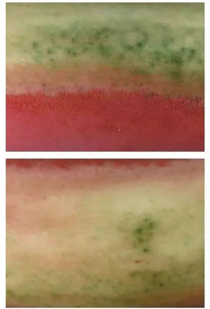 | | 瓜皮绿(浇绿)、孔雀绿(珐翠、吉翠)、西湖水(葵绿、葱绿、松石绿)、苹果绿、豆绿、蛇皮绿 |