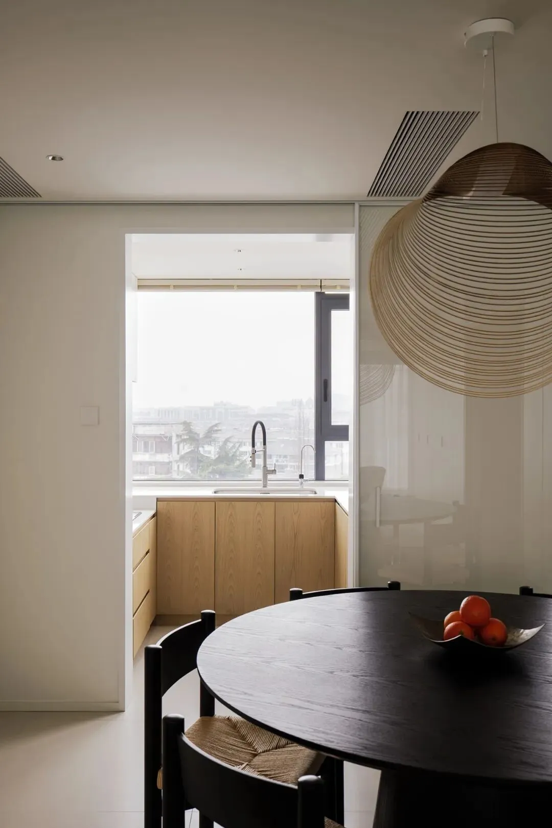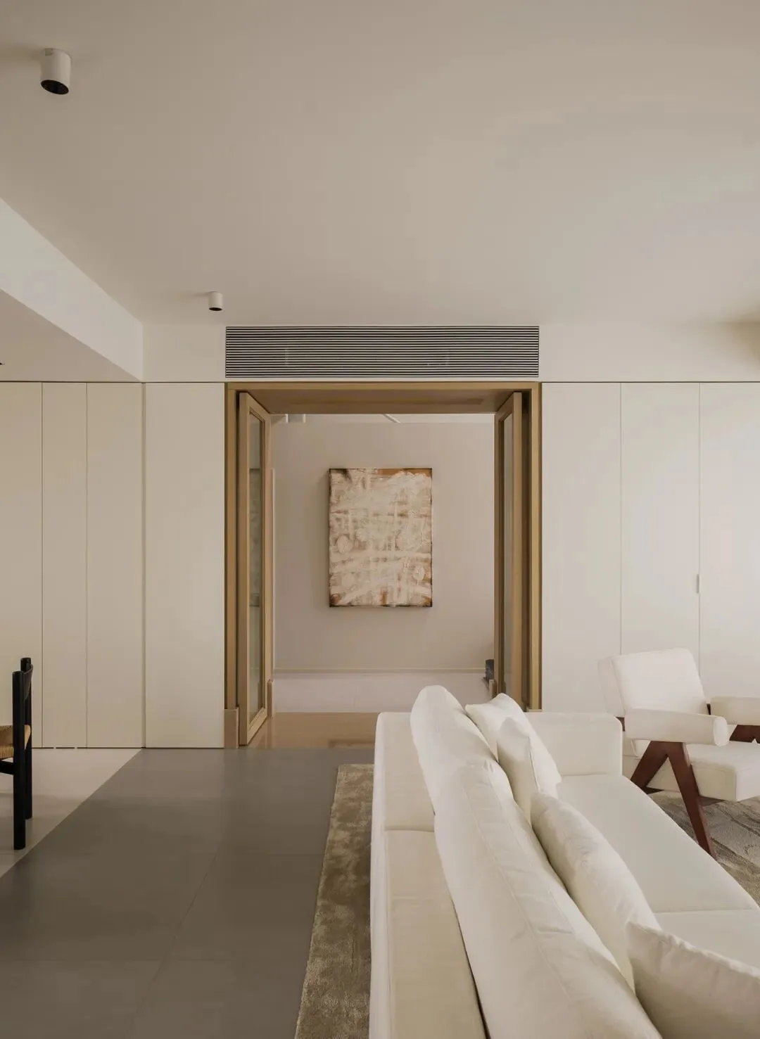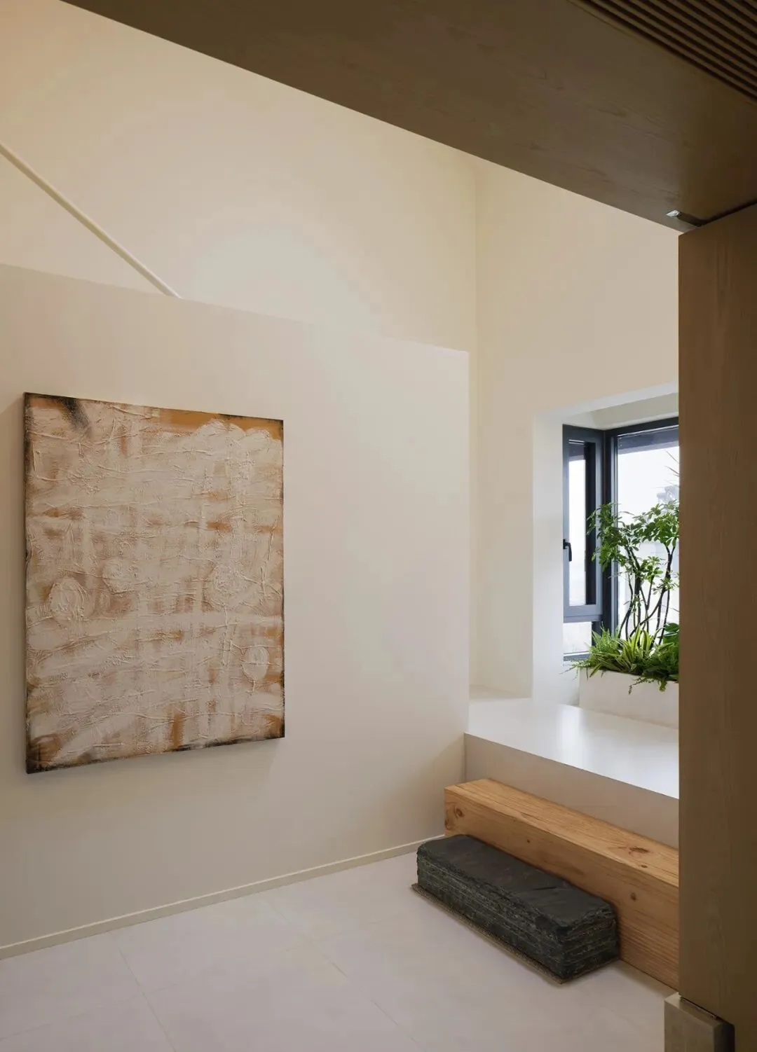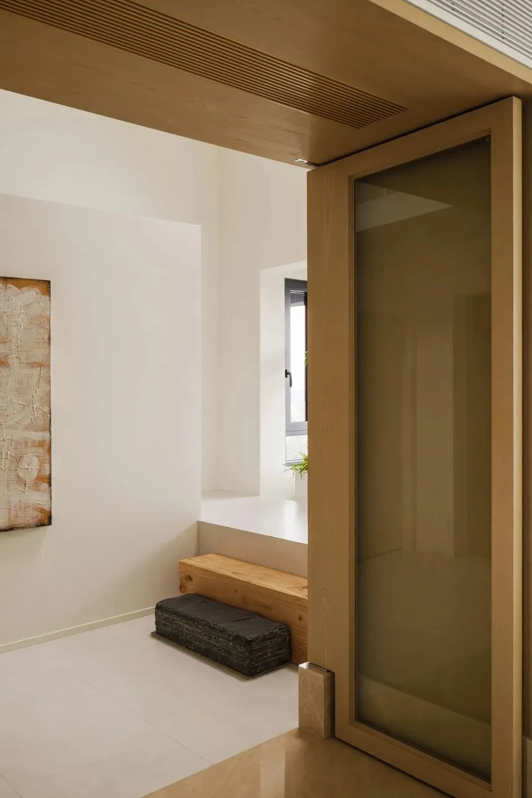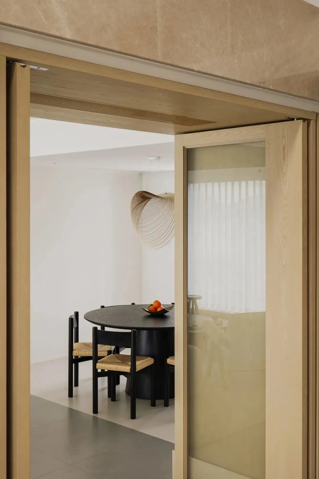 与天地轴的玄关门相结合,界定公共与私密,既保持气流的通透,又让冷暖停留得恰到好处。