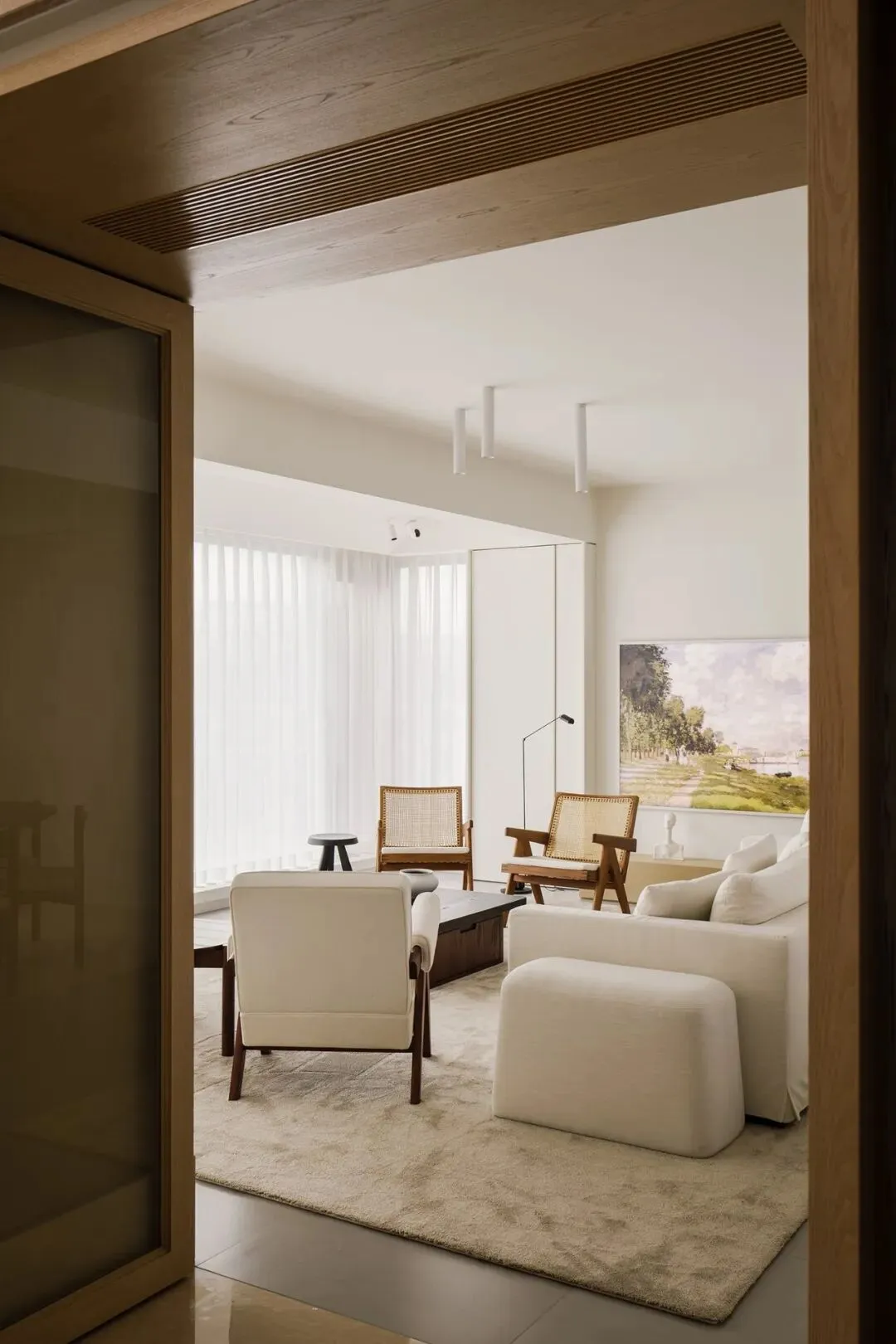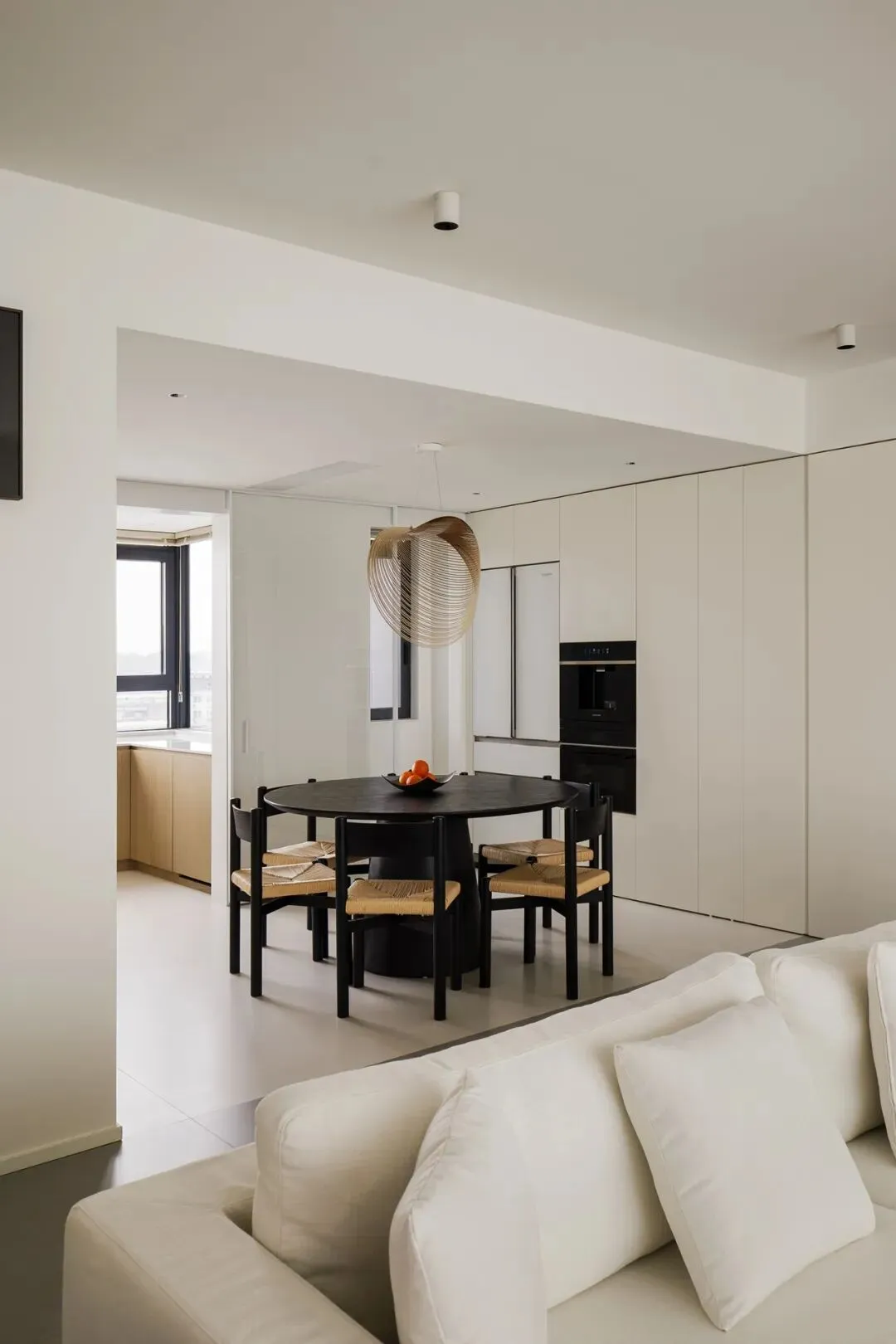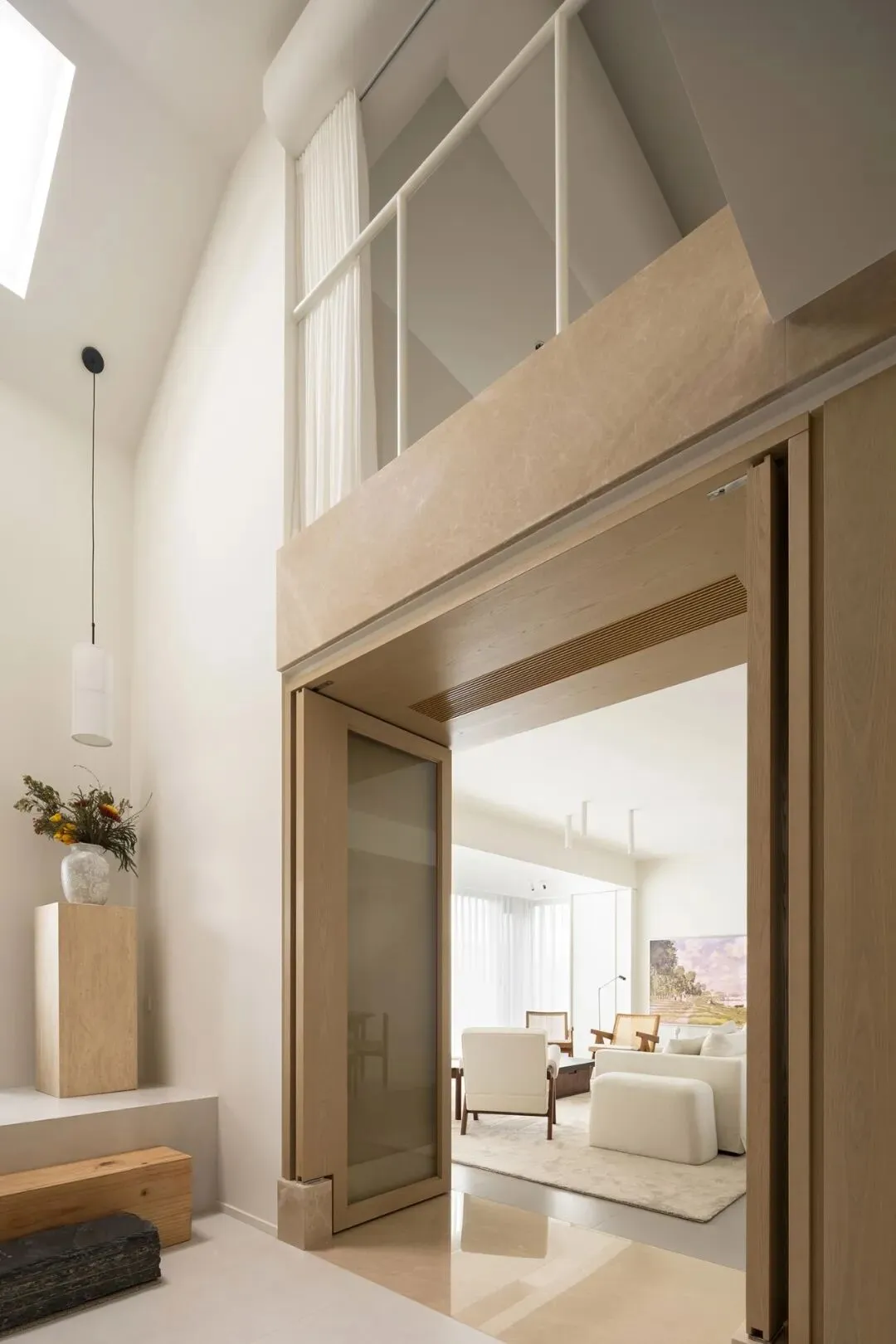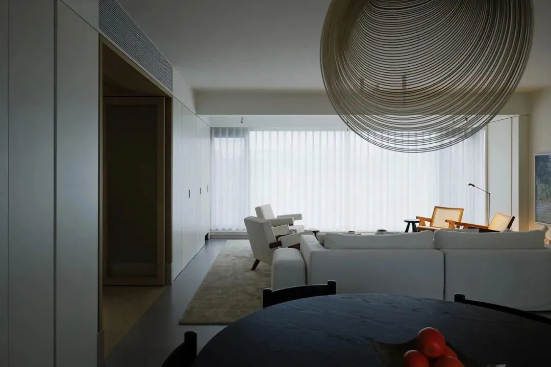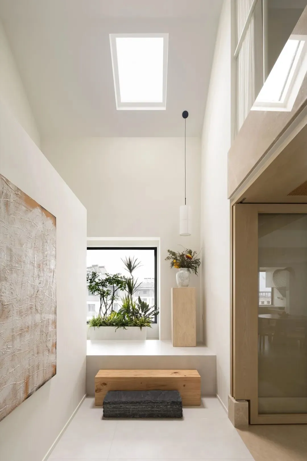 与天地轴的玄关门相结合,界定公共与私密,既保持气流的通透,又让冷暖停留得恰到好处。