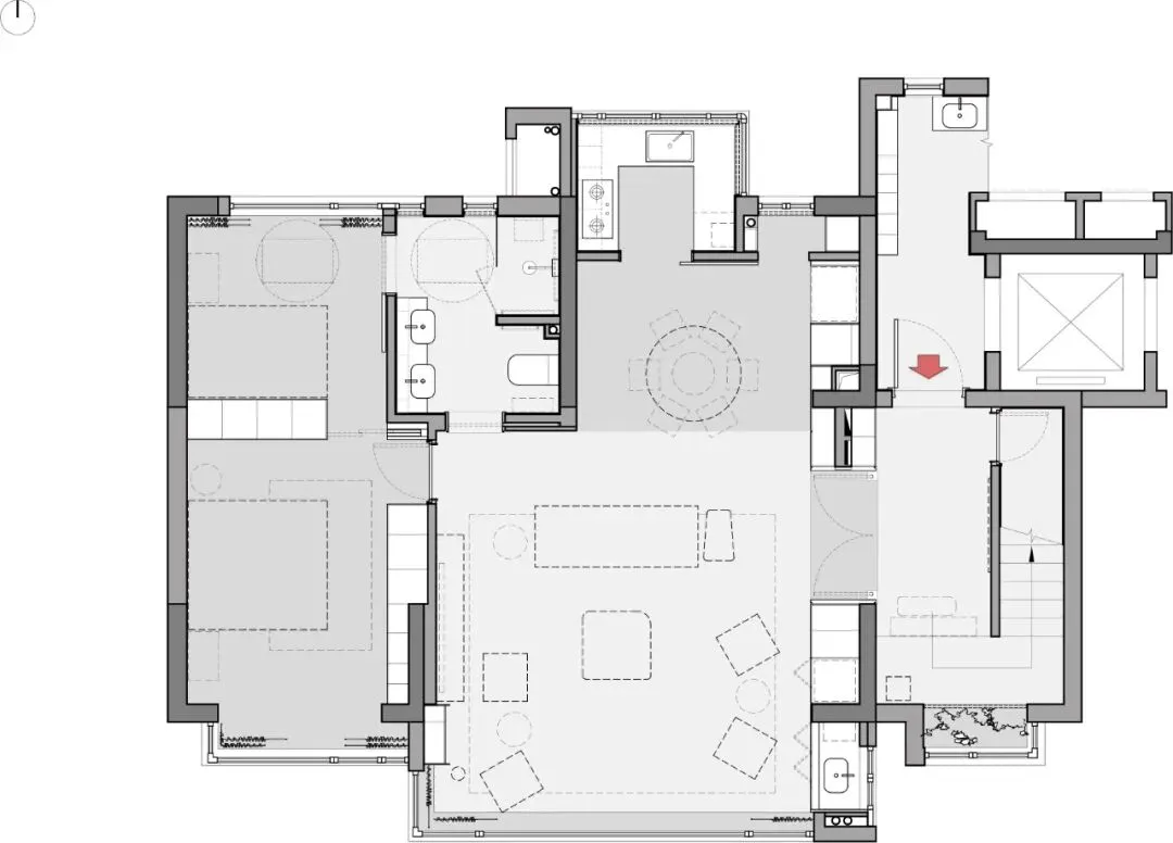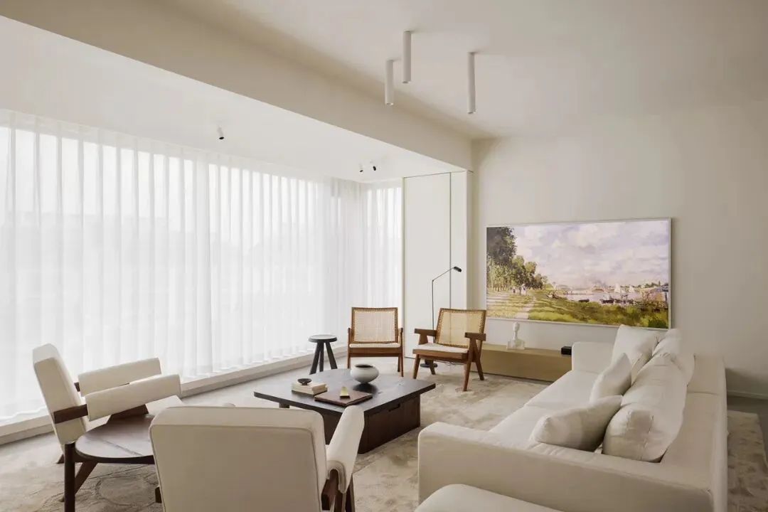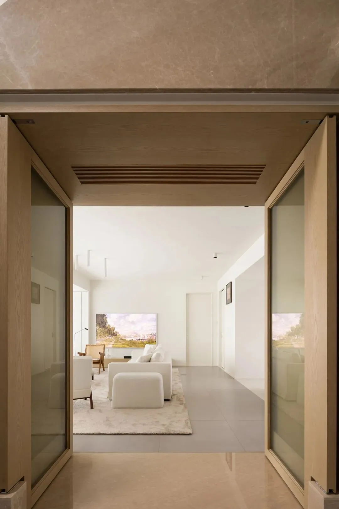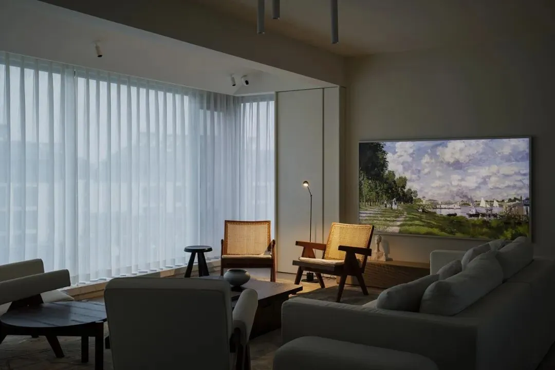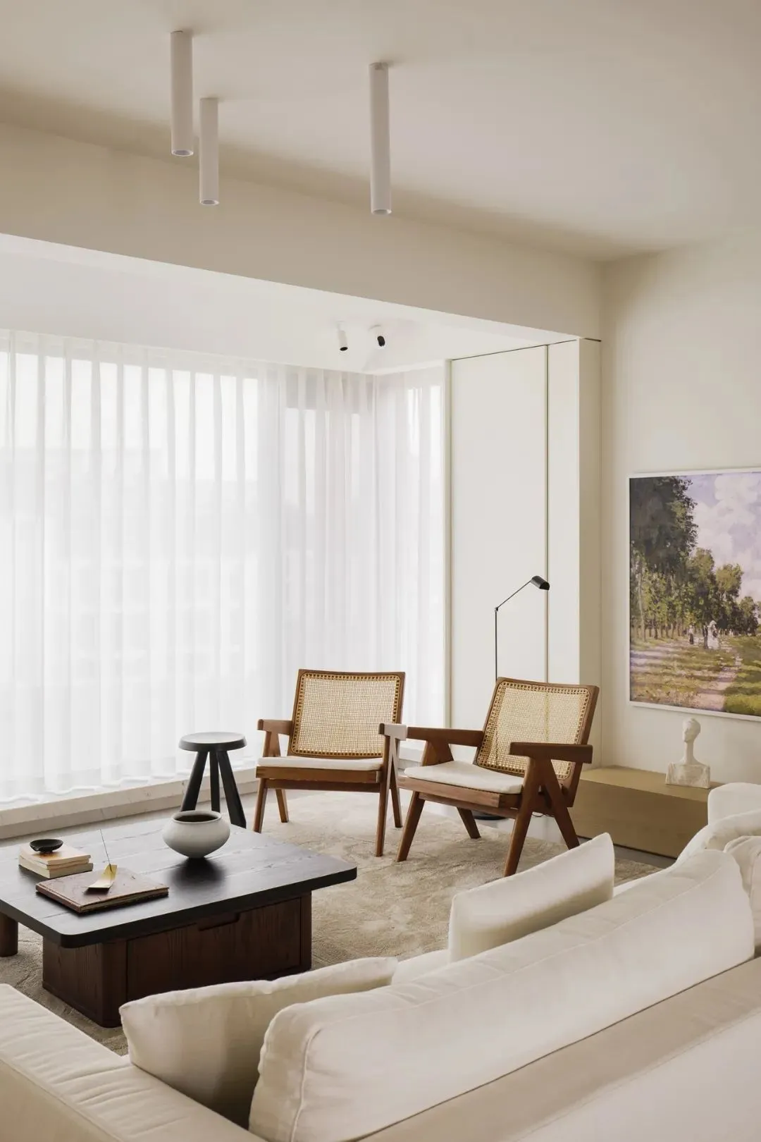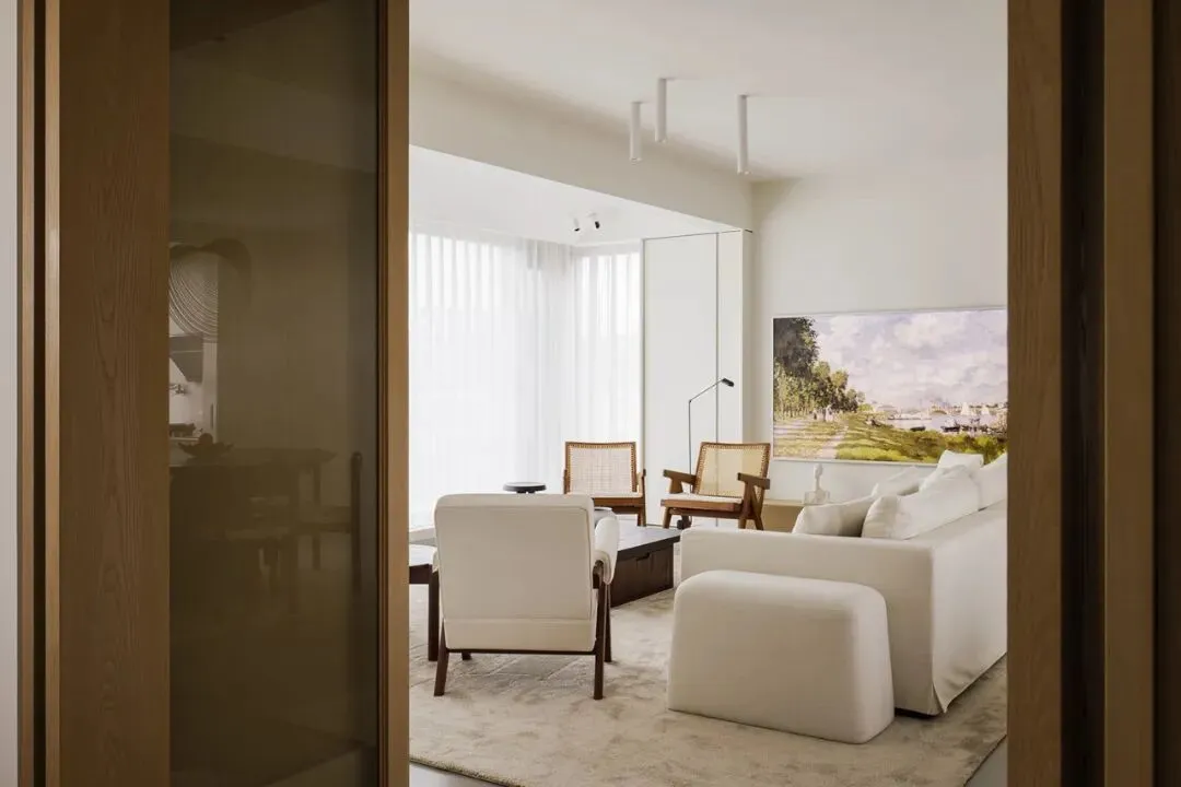 与天地轴的玄关门相结合,界定公共与私密,既保持气流的通透,又让冷暖停留得恰到好处。